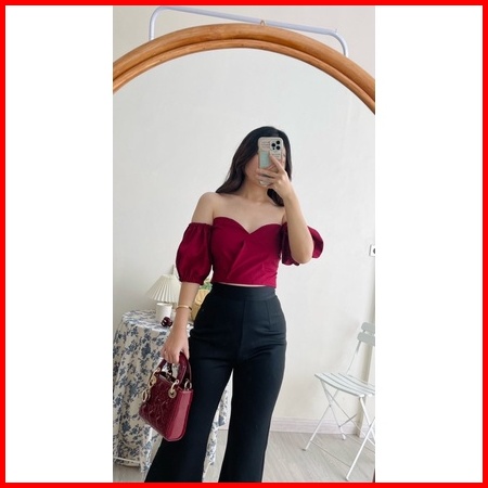 Fortunelavie Gia Top Pakaian Wanita Crop Wanita Sabrina Top