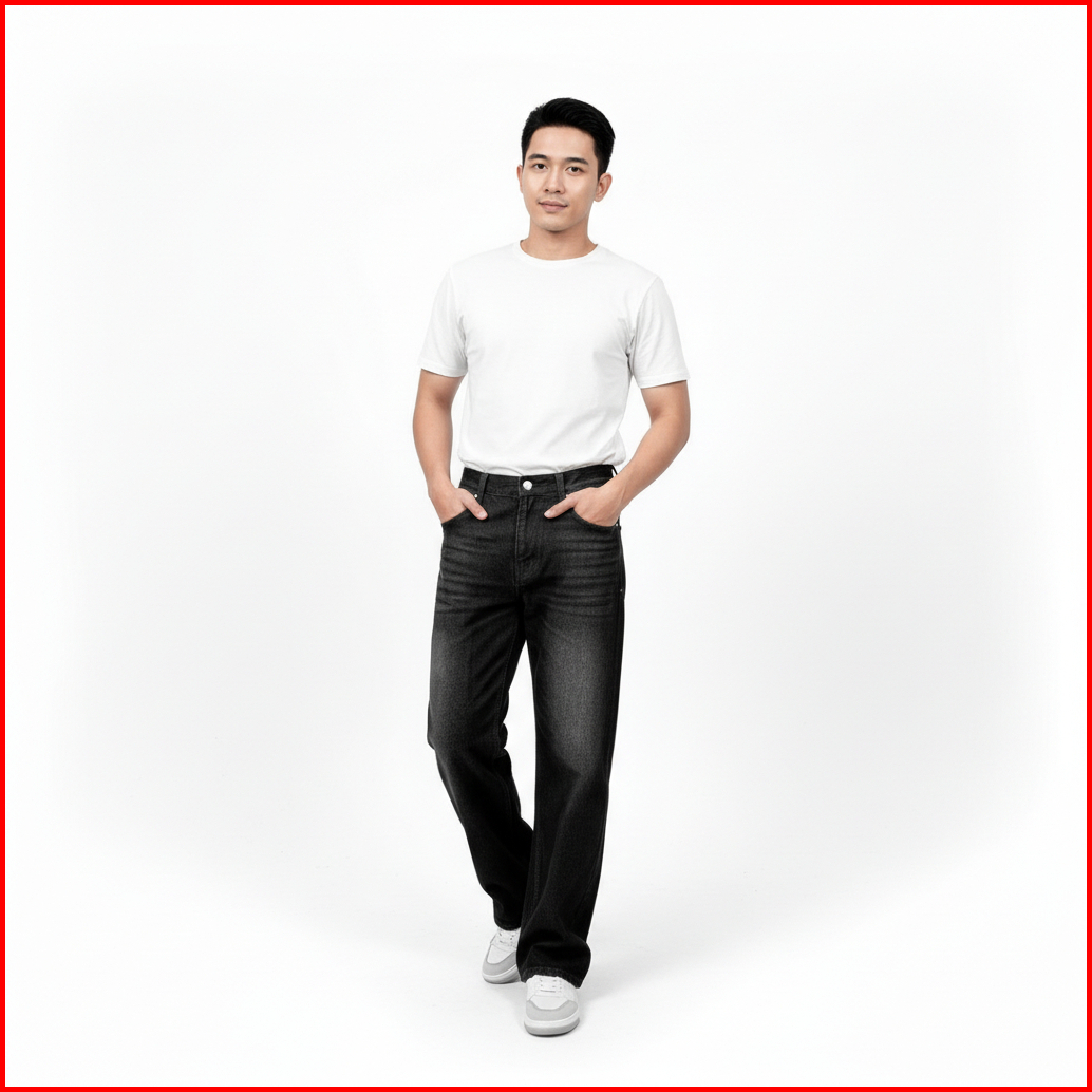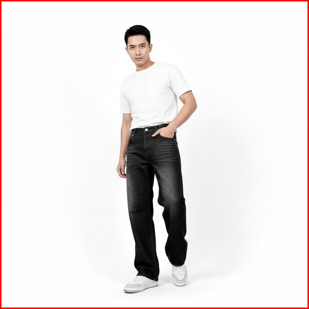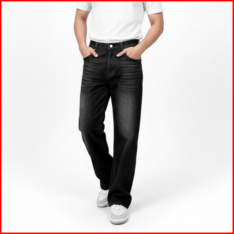 Celana Panjang Jeans Pria Warna Hitam Wisker Model Standar Reguler Basic Denim Casual Loose
