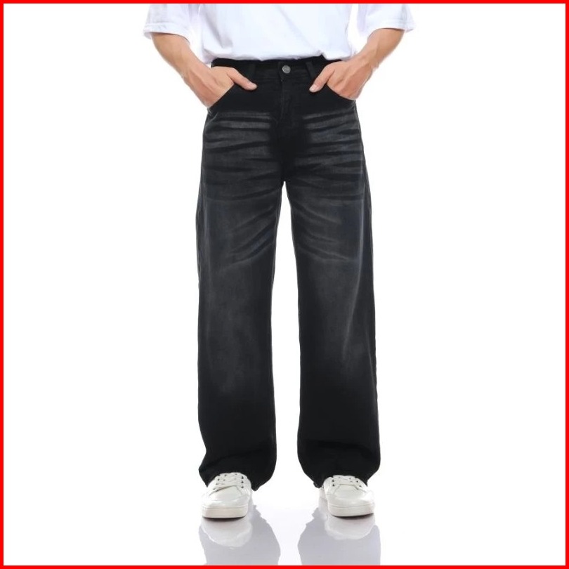 Celana Jeans Wisker Pria Wide Leg Lebar Gombrong Skena Black Wisker Pria Lose Fit Jumbo