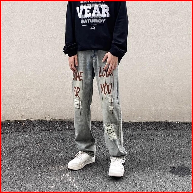S 5xl Jeans Robek Retro Pinggang Tinggi Pria Korea Gaya Terbaru Jeans Hip Hop Longgar Kasual