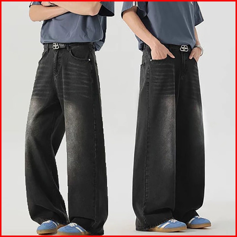 Celana Jeans Pria Panjang Baggy Hitam Pants Celana Denim Dewasa Cowok Loose Fit Jumbo New