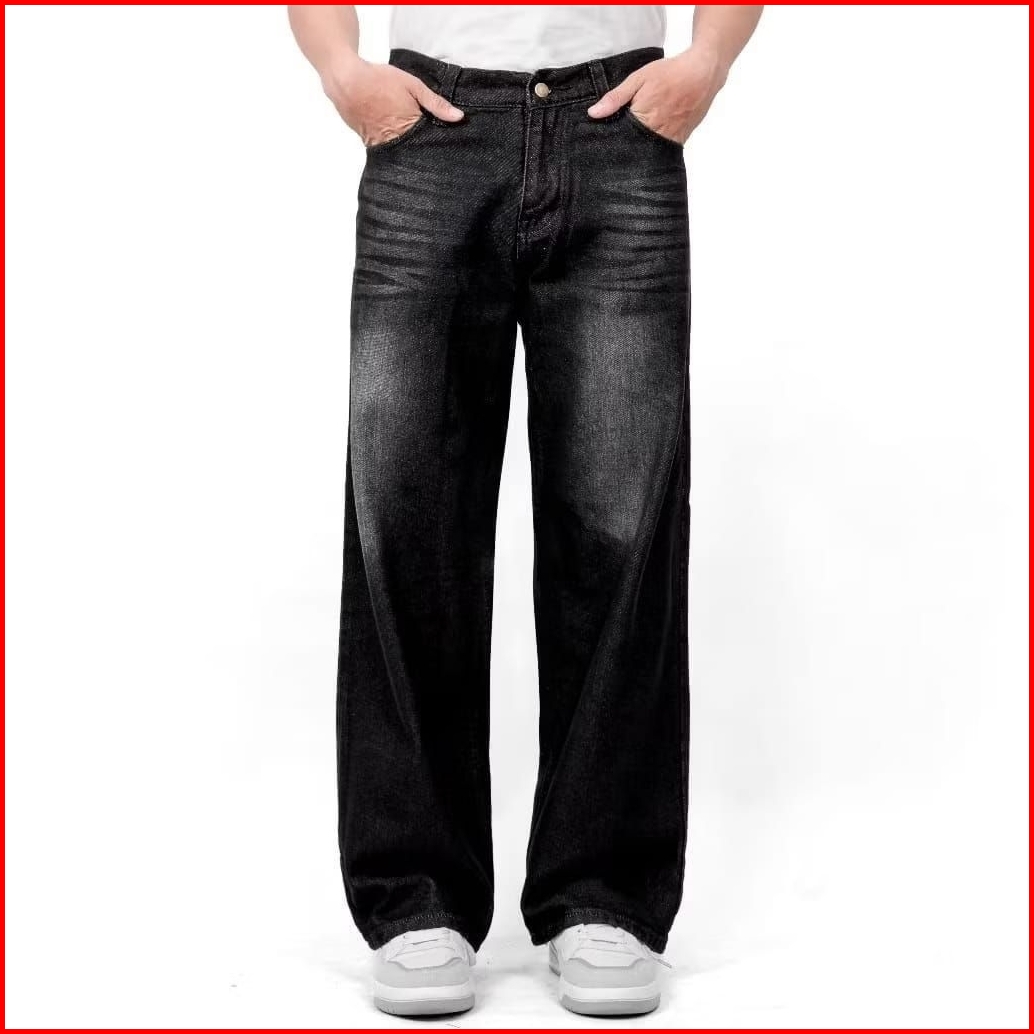 Celana Panjang Jeans Pria Baggy Pants Skena Gombrong Wisker Korean Style Oversize Loose Blue Jeans Straight Boyfriend Je