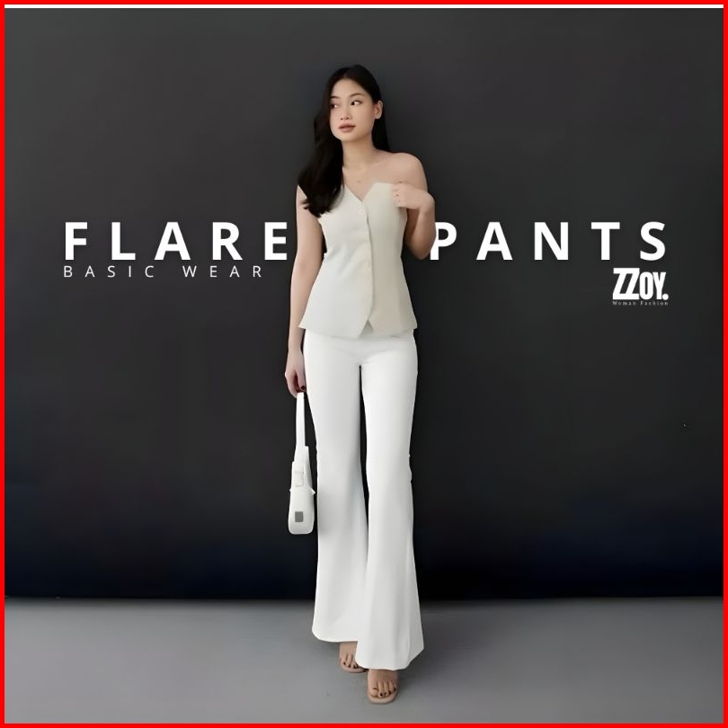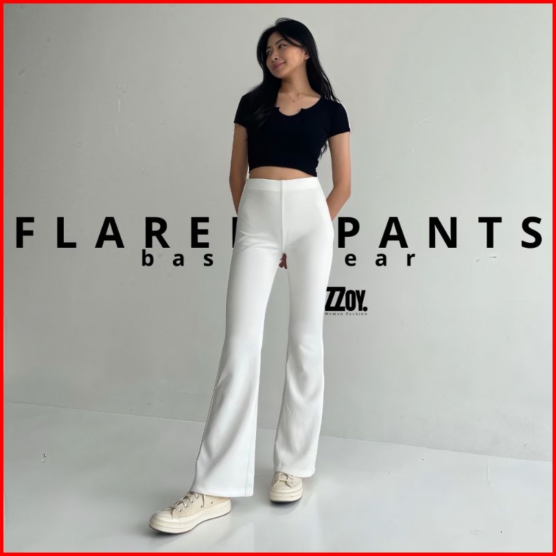 Flare Pants Highwaist Cutbray Celana Kulot Ribb Bahan Knit Streching