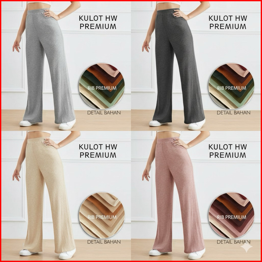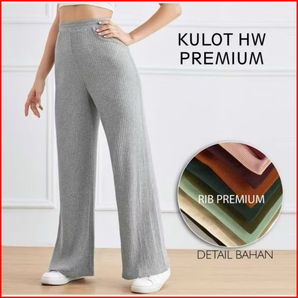Celana Kulot Premium Rib Knit Celana Panjang Wanita Murah Celana Kulot Knit Polos Wanita