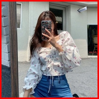 Ff Longrose Sabrina Top Bunga-bunga Wolfis