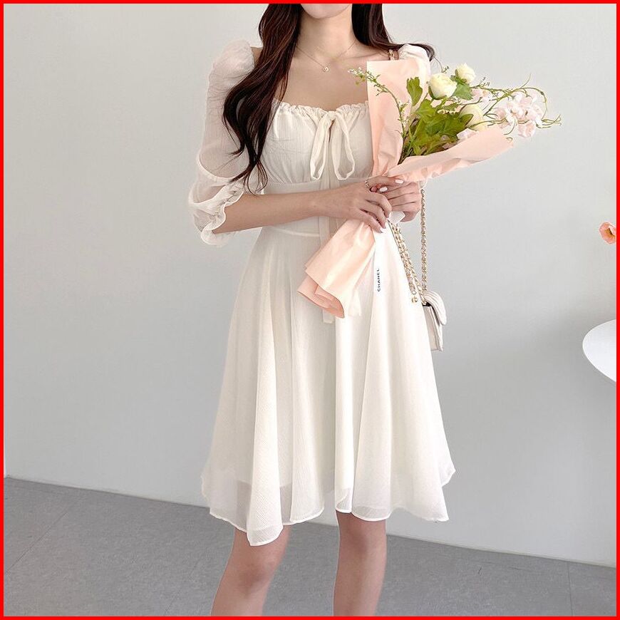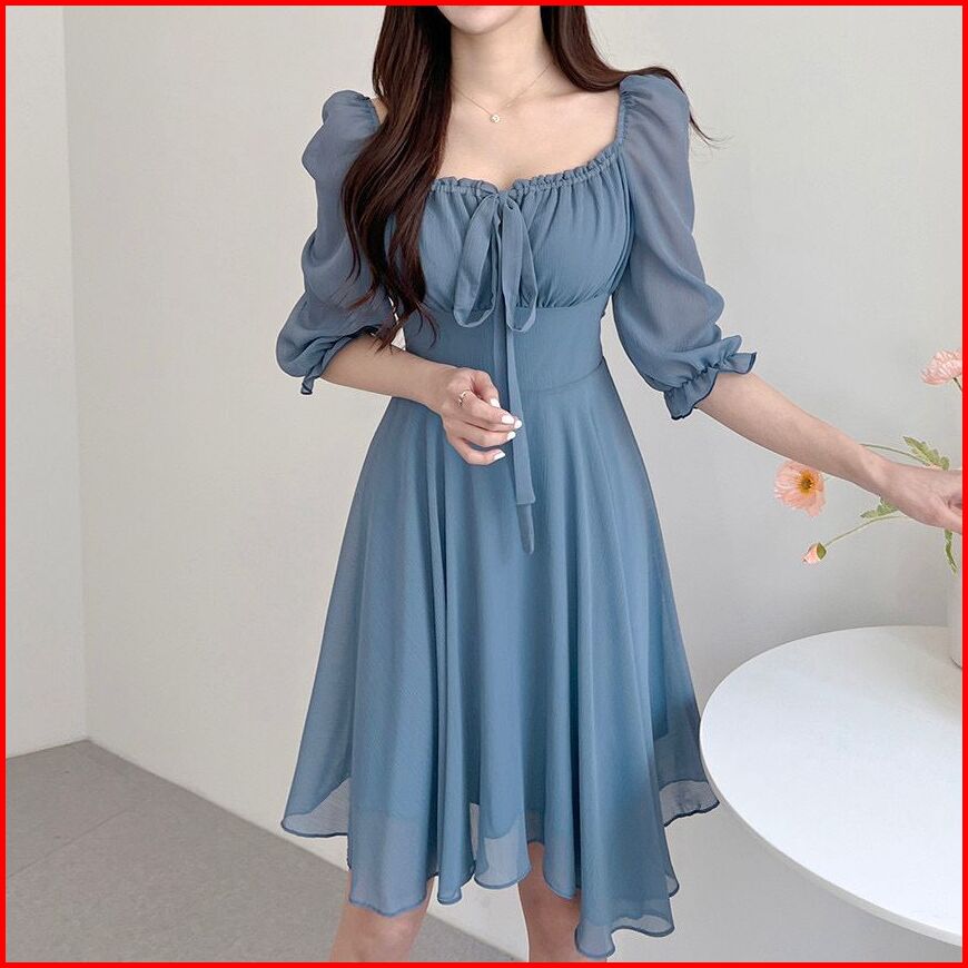 Mini Dress Wanita Sabrina Off Shoulder Lengan 3 4 Bahan Chiffon Sifon Ceruty S M L Xl Jumbo