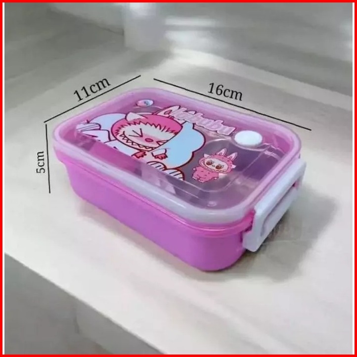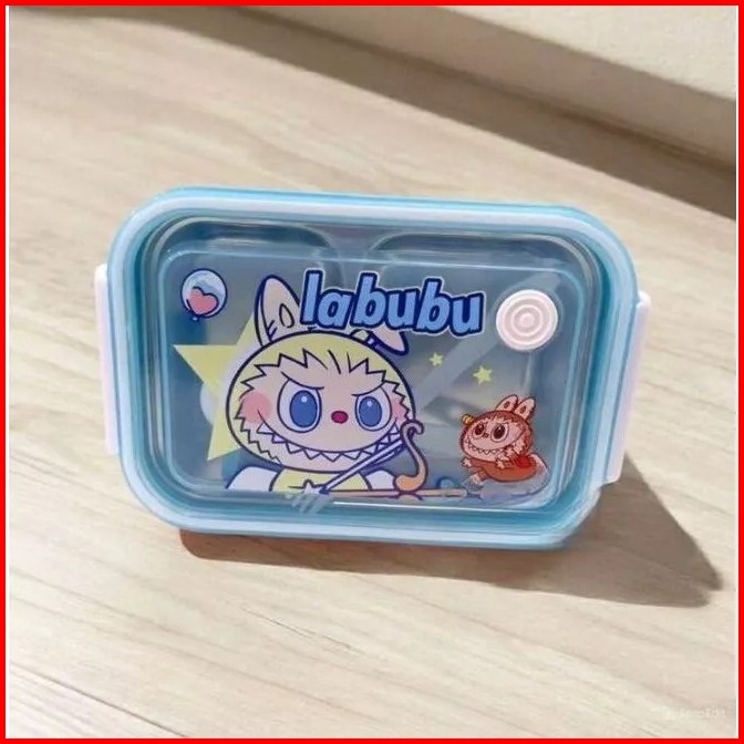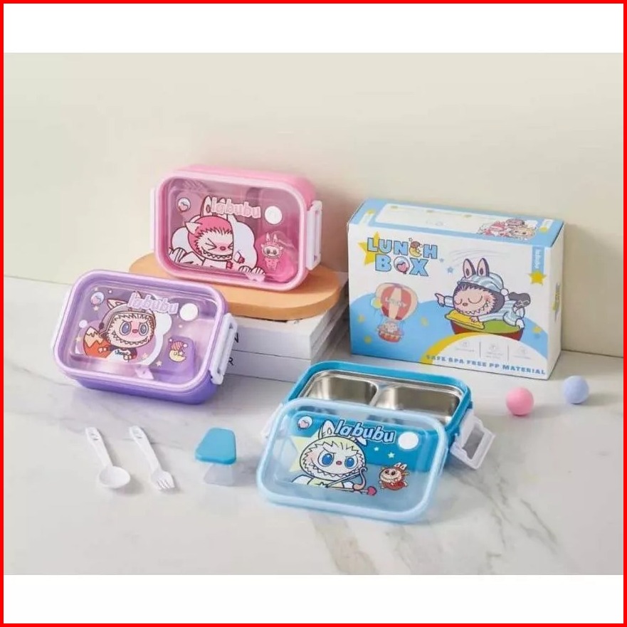 Lunch Box Stainless Steel Labubu 2 Sekat Mini Box Bpa Free Sendok Garpu Tempat Bekal Stainless Lb 5174