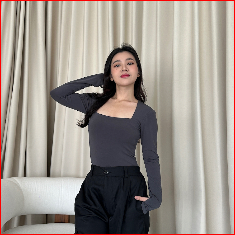 Somethingsweet - Sophia Bodysuit Wanita L Atasan Wanita L Bodysuit Basic Lengan Panjang L Leher Kotak Wanita L Long Slee