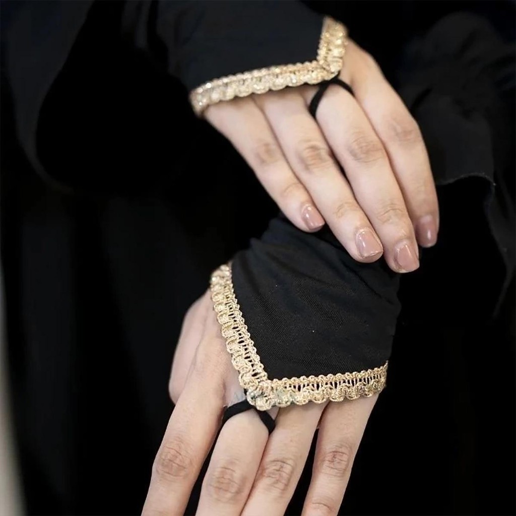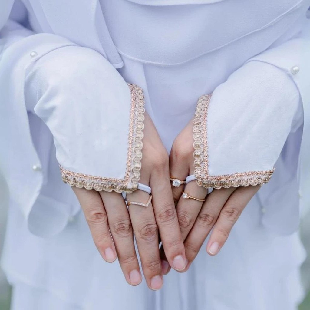ANP88 Manset Handsock Cincin Renda Gold / Handsock Umroh dan Haji Panjang / Manset Cincin Renda Warna Bahan Jersea Adem