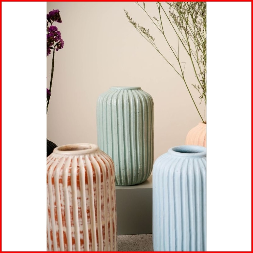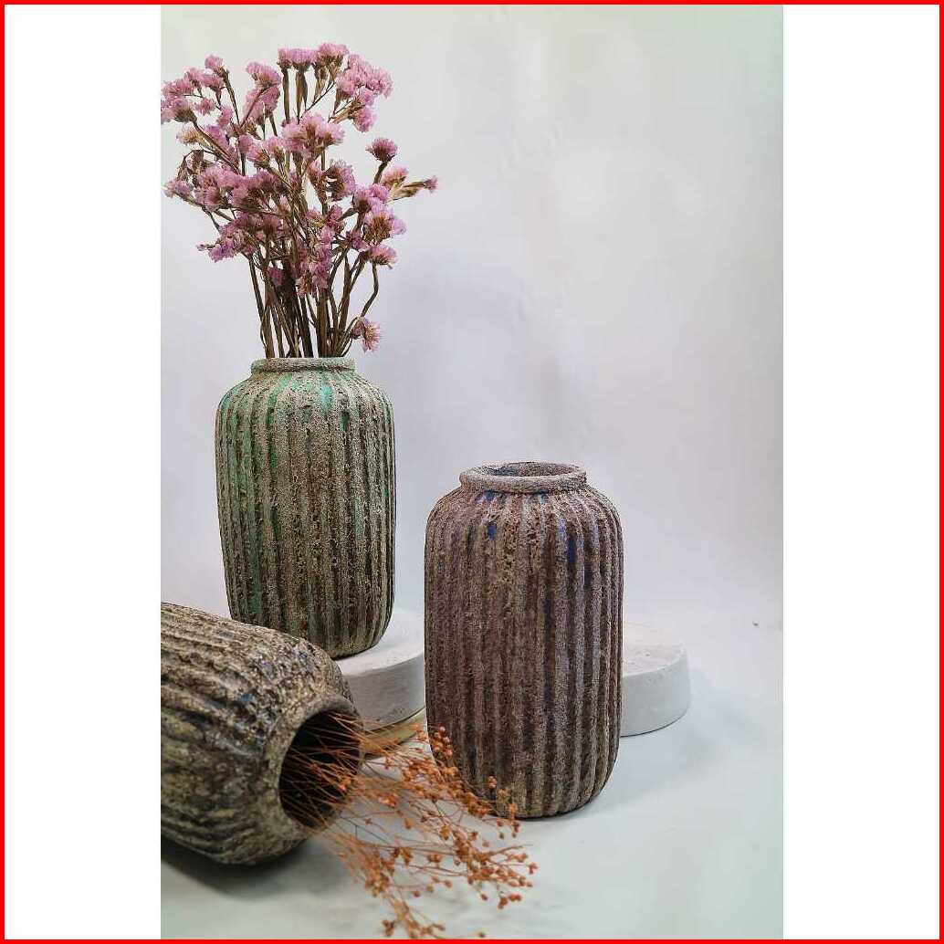 Vas Bunga Terakota Estetik Minimalis Vintage D4t20 Stripe