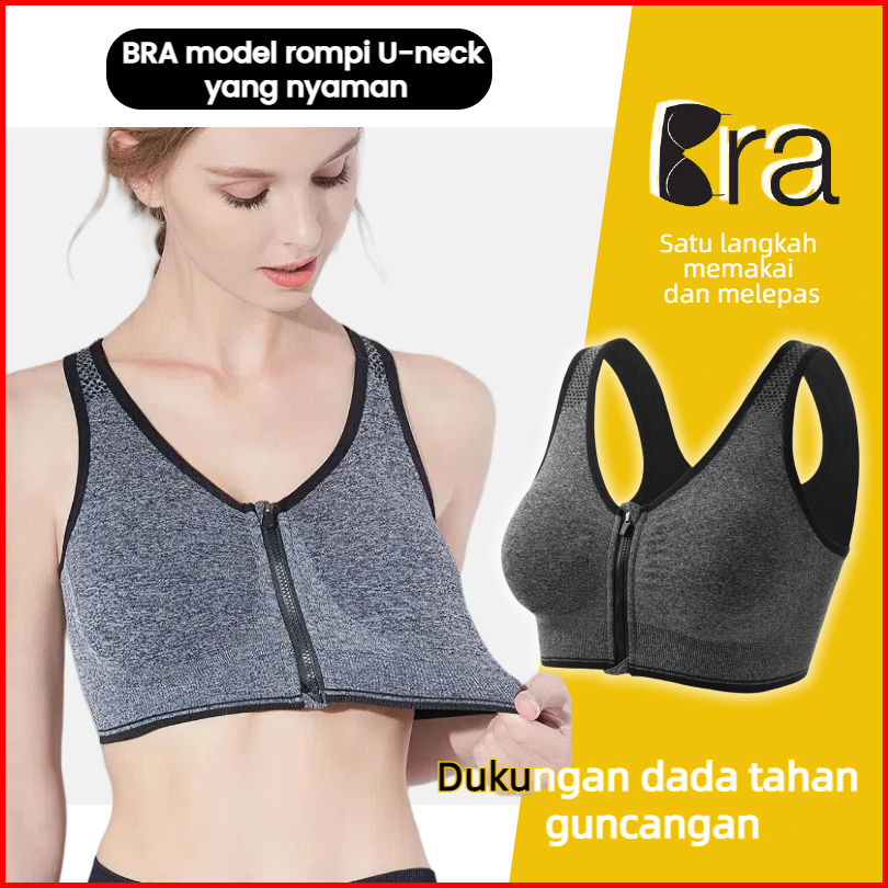 Sport Bra Jumbo Olahraga Bh Resleting Depan Gym Yoga Push Up Bra Wanita 2023