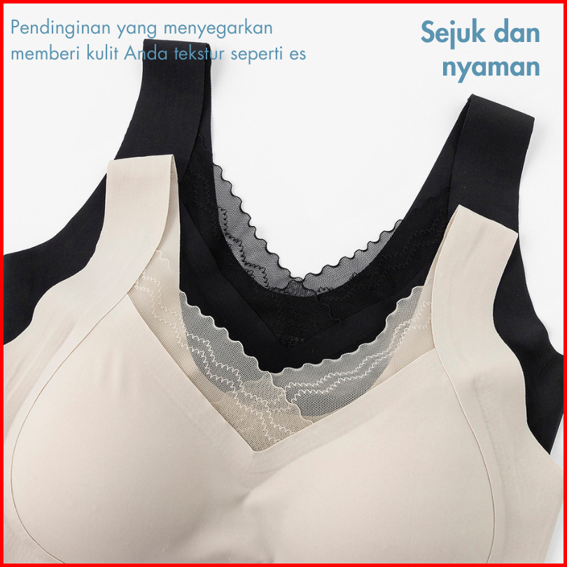 Uru 2pcs Bra V Renda Seamless Bh Wanita Lite Bra Push Up Ringan Jumbo Pakaian Lebar Tanpa Kawat
