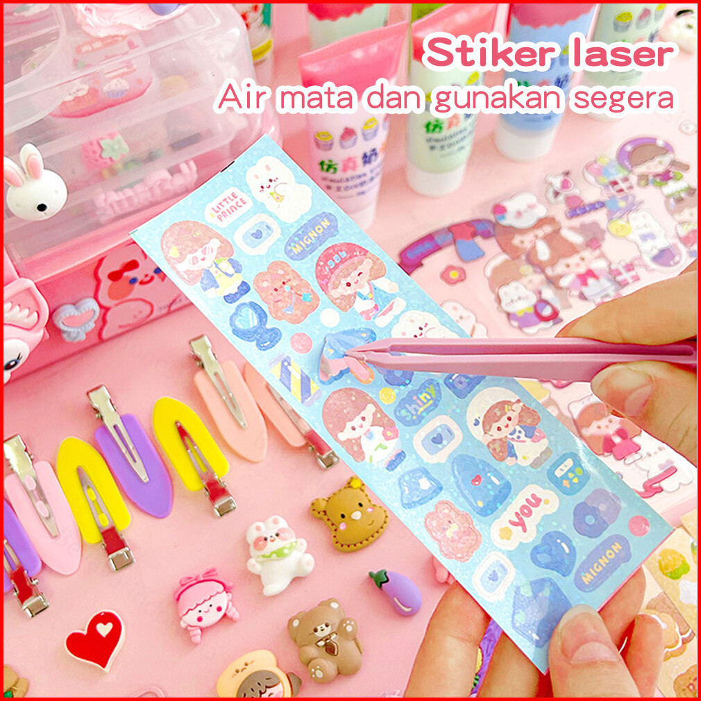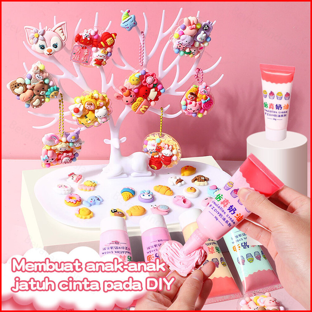 Bevavar Diy Kotak Guka Kartun Set Gantungan Kunci Lucu Mainan Cream Gooka Anak
