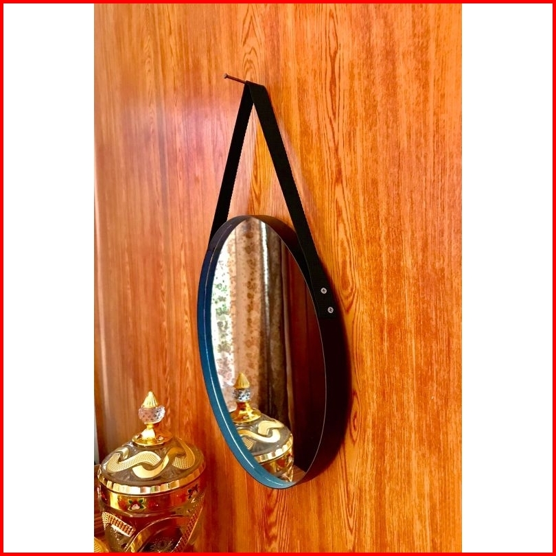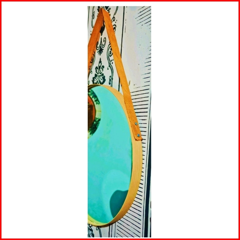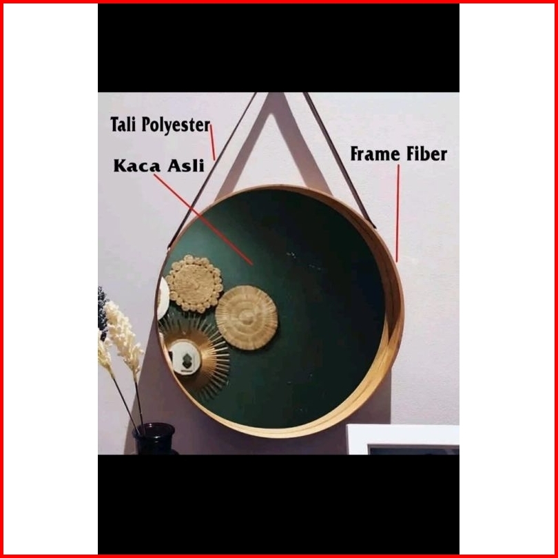 Free Packing Kayu Cermin Bulat Aesthetic Kaca Cermin Frameless Gantung Tali