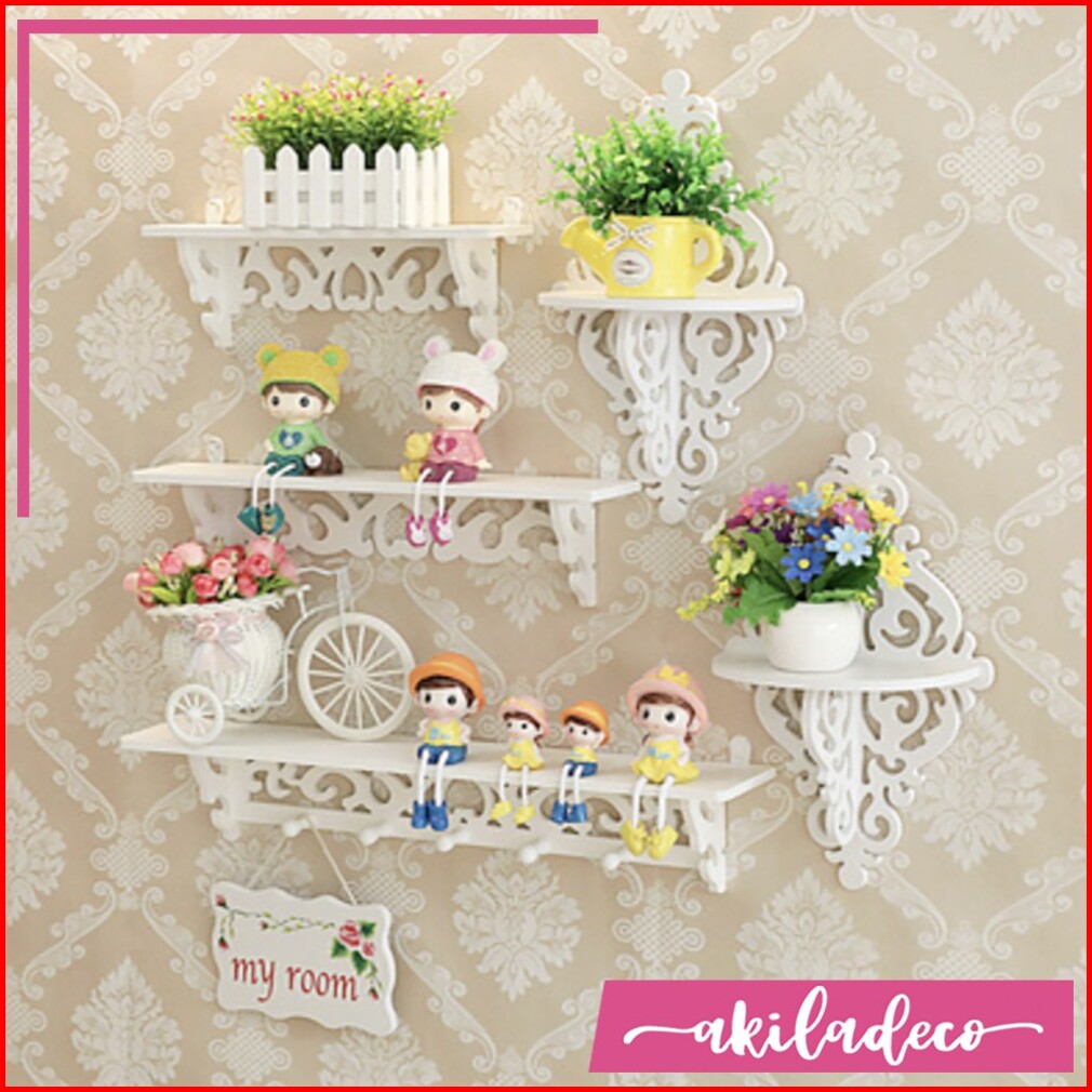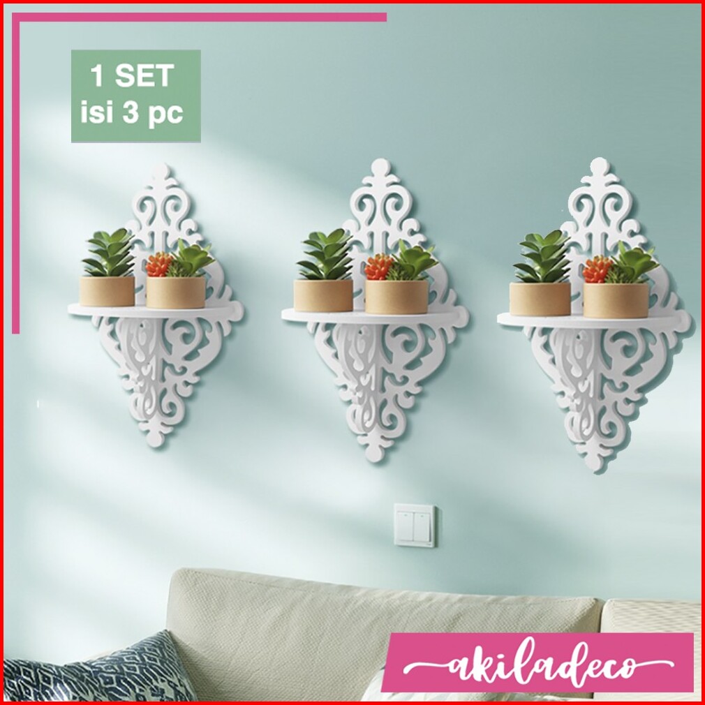 Rak Dinding Vintage Set Isi 3 Rak Ambalan Minimalis Floating Shelf Motif Vintage Bunga