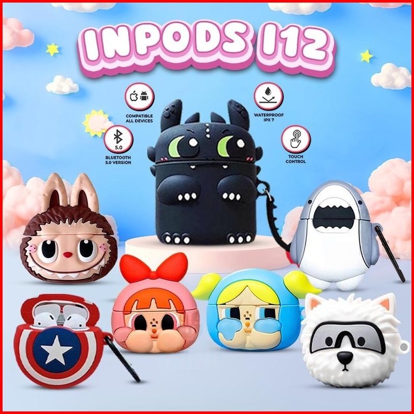 Headset Bluetooth I12 Inpods 12 Dengan Case Kartun 3d Lucu True Wireless Stereo Hifi Earbud Earphone Ponsel