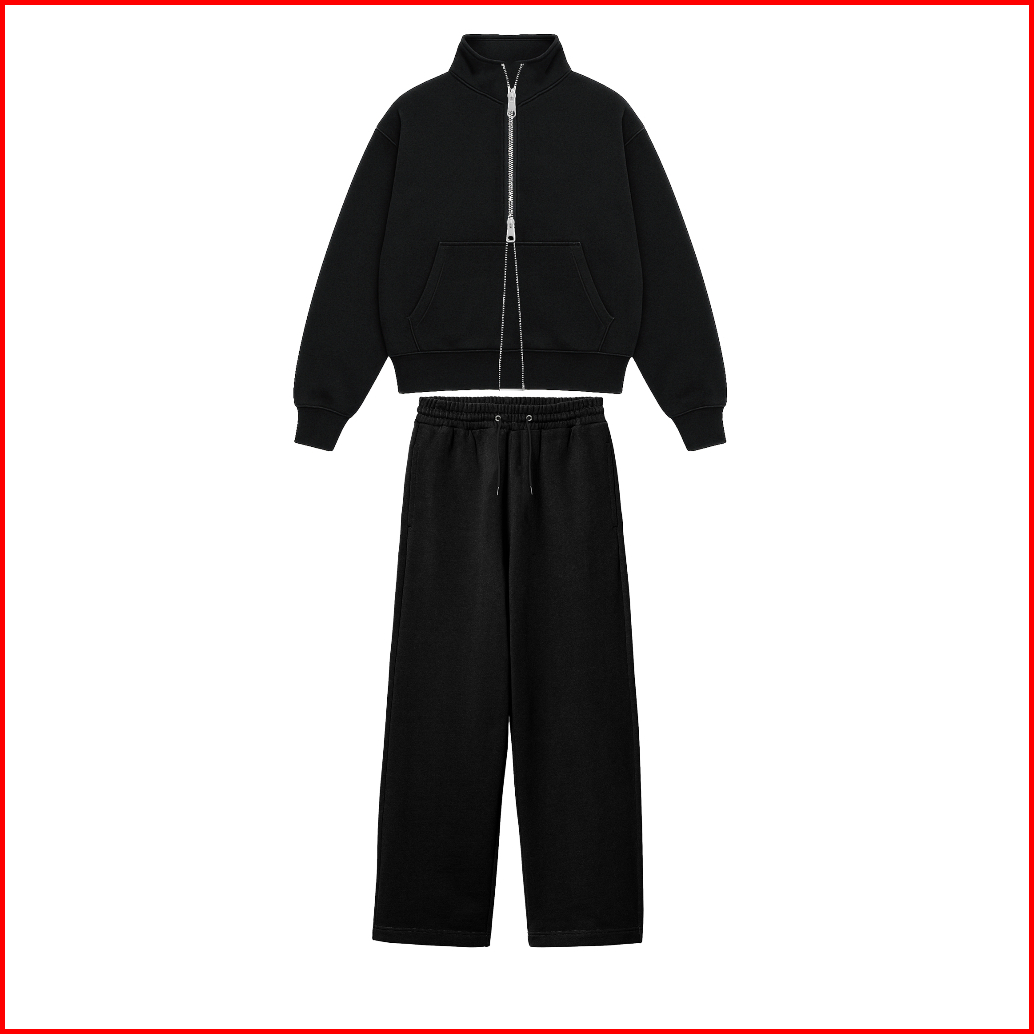Caelux - One Set Tracktop Boxy Double Zipper Sweatpants Baggy With Basic Fleece