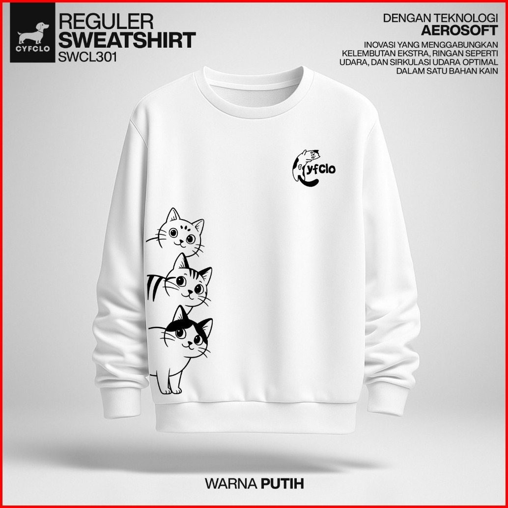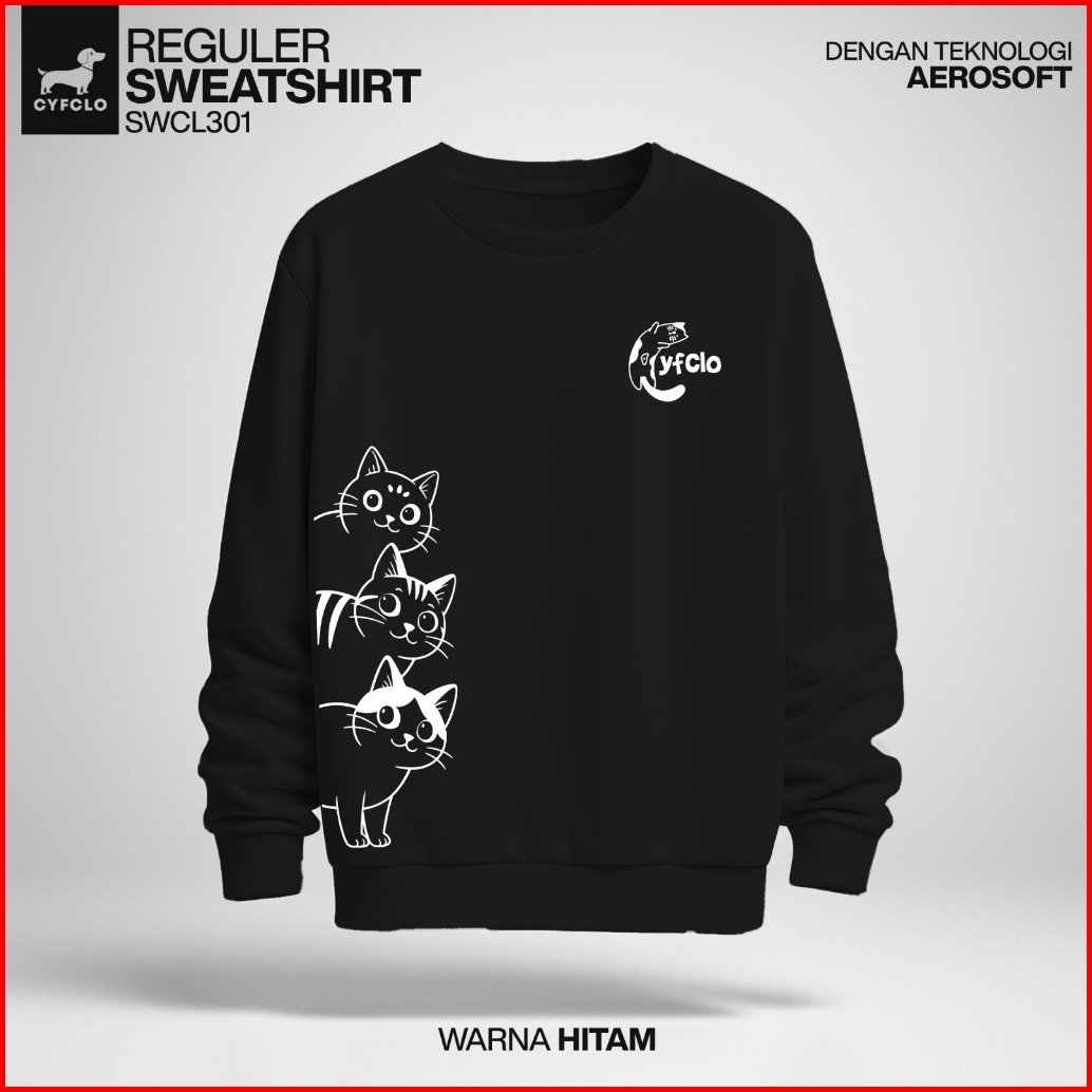 Cyfclo Sweater Jaket Tebal Sablon Dtf Dengan Aerosoft Tech Motif Lucu Crewneck Lembut Menghangatkan Swcl301-peek Cat