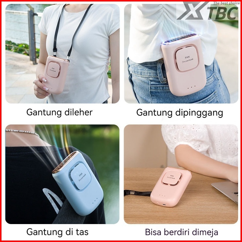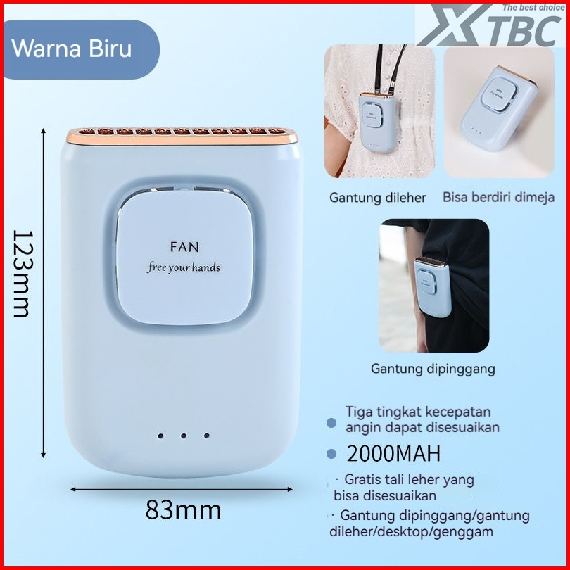 Xtbc Kipas Angin Portable Mini 2000mah 3 Kecepatan Bisa Gantung Leher Pinggang Usb Rechargeable Kipas Angin Mini Portabl