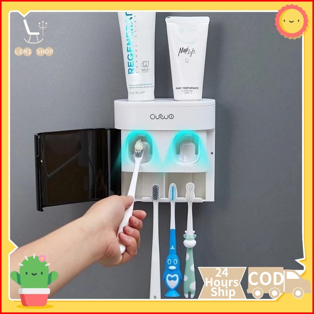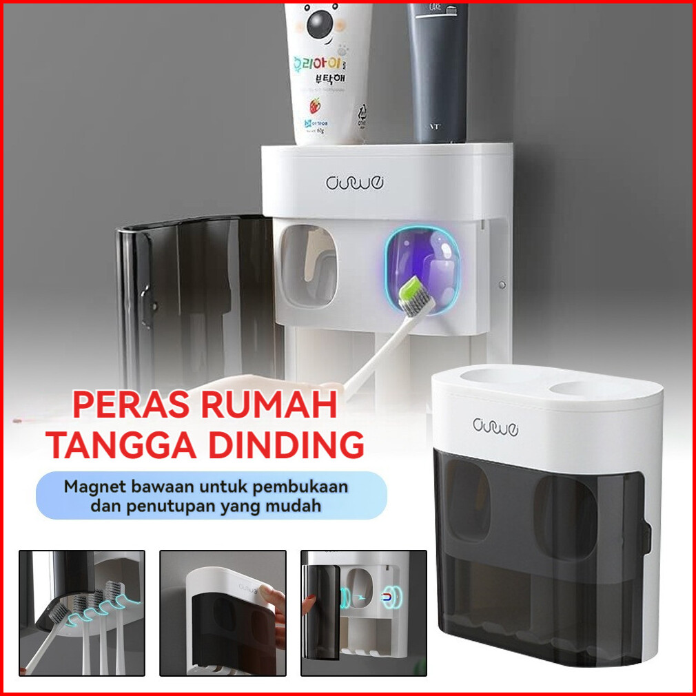 Dispenser Odol Dan Tempat Sikat Gigi Dua Slot Pemeras Pasta Gigi Otomatis Yang Dipasang Di Dinding