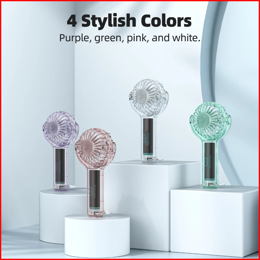 Goojodoq Kipas Genggam Mini Transparan Rotasi 360 Baterai 1200 Mah Cahaya Sekitar Dengan Kipas Pendingin Mini Usb Portab