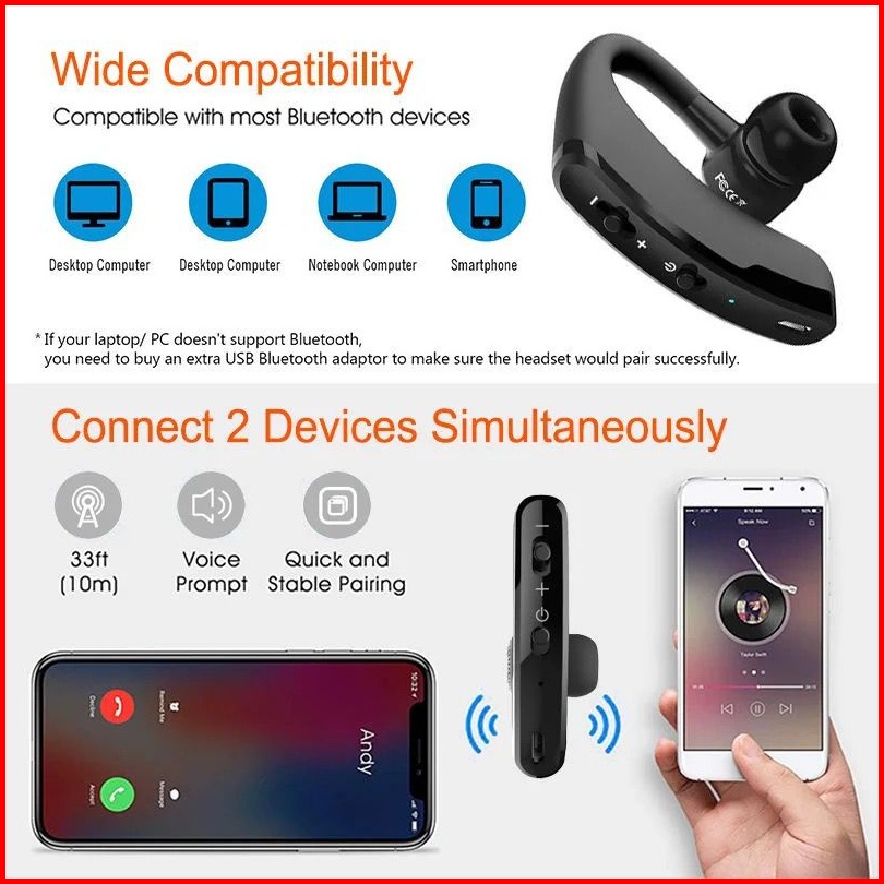 V9 Single Earphone Business Headphone Waterproof Mono Headset Outdoor Hd Call Bluetooth Wireless