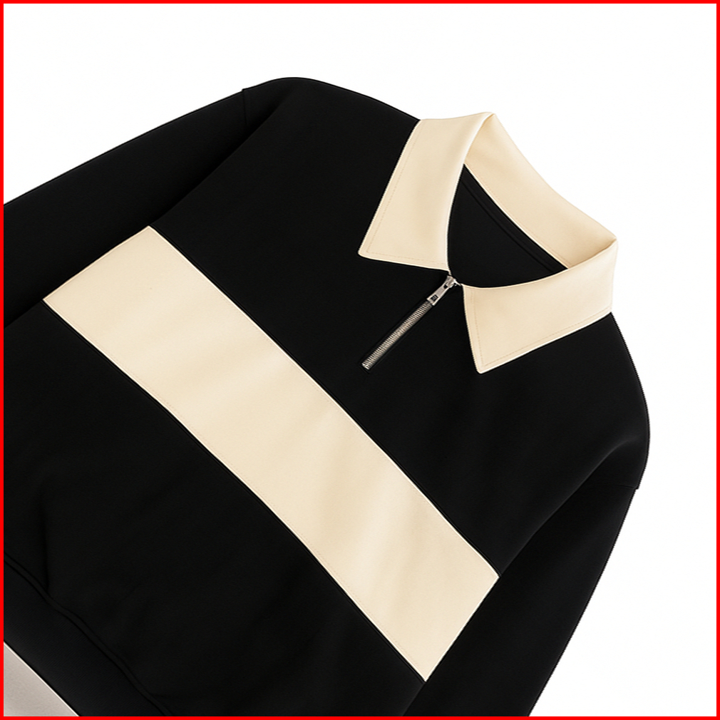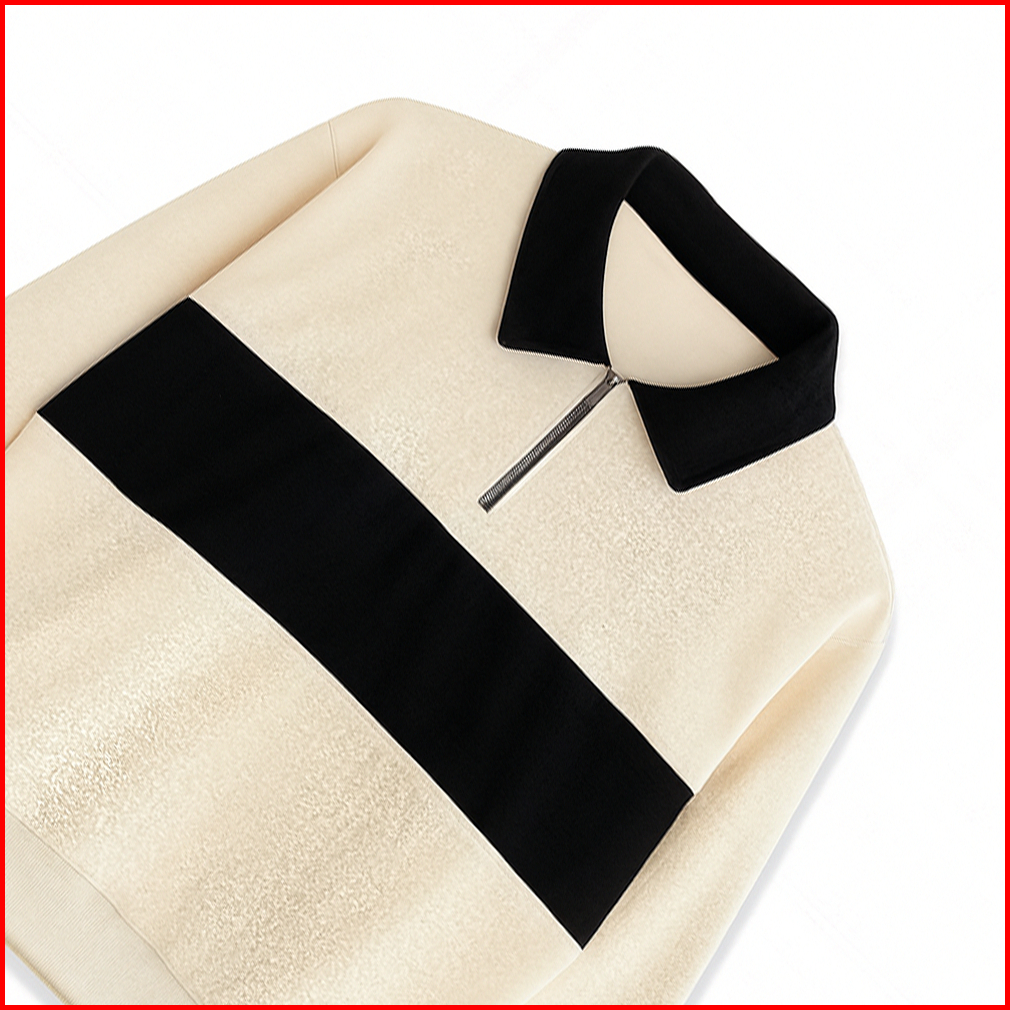 Rugby Half Zipper Twotone Crewneck Jaket Sweater Hoodie Zipper Pria Wanita