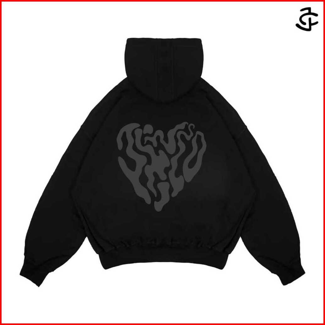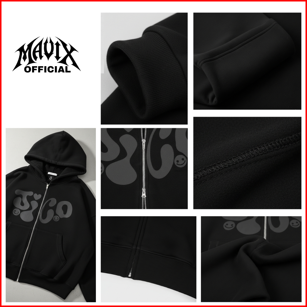 Mavix - Hoodie Boxy Oversize Hitam J Love Abu Double Zipper Tebal Streetwear