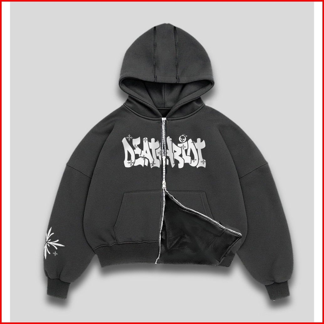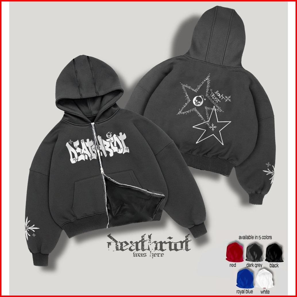 Dtrt - Jaket Hoodie Double Zipper Boxy Jaket Hitam Sweater Hodie Kalcer Pria Oversized - Free Gift