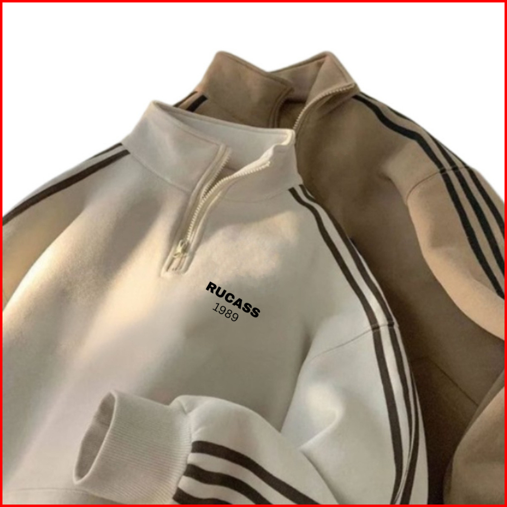 Half Zipper Rucass Bold Linea Black Premium Pria Casual Lengan Panjang