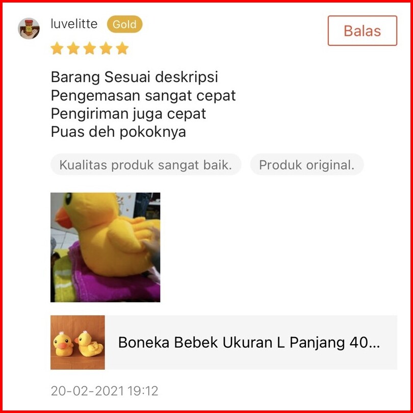 Boneka Bebek Ukuran L Panjang 40cm Dan Tinggi 30cm Berlabel Sni
