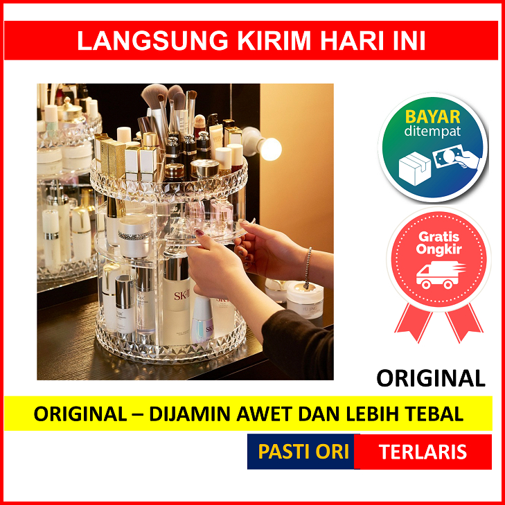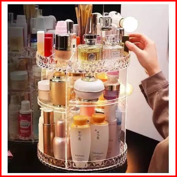 Carrousel Rak Kosmetik Acrylic Putar 360 Derajat Diamond Polos Rak Make Up Organizer Tempat Makeup Lipstik Parfum Parfum