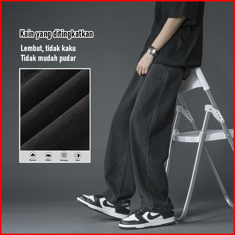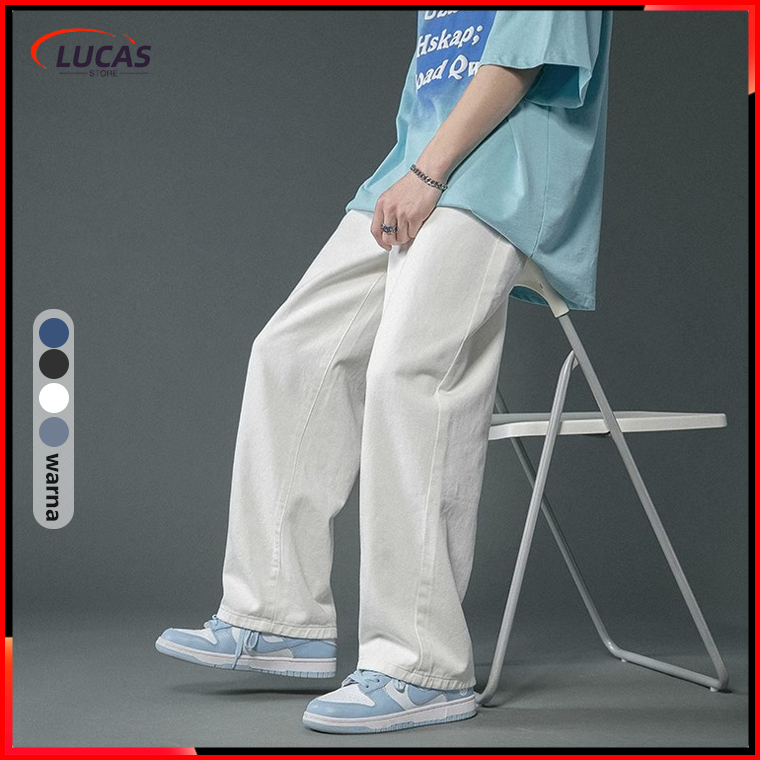 Celana Jeans Pria Korean Style Kulot Jeans Putih Celana Denim Gombrang Loose Pants Baggy Jeans Pria
