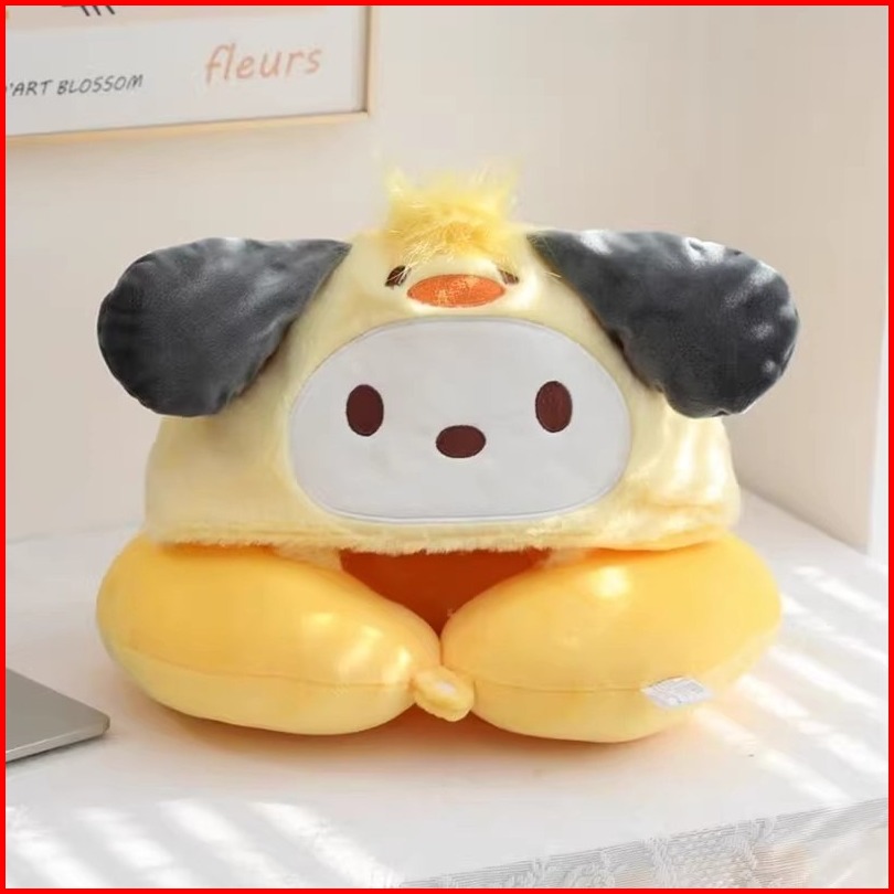 Bantal Leher Cartoon Sanrio Kuromi Pochacco Cinnamoroll My Melody Plush Hooded Kawaii New