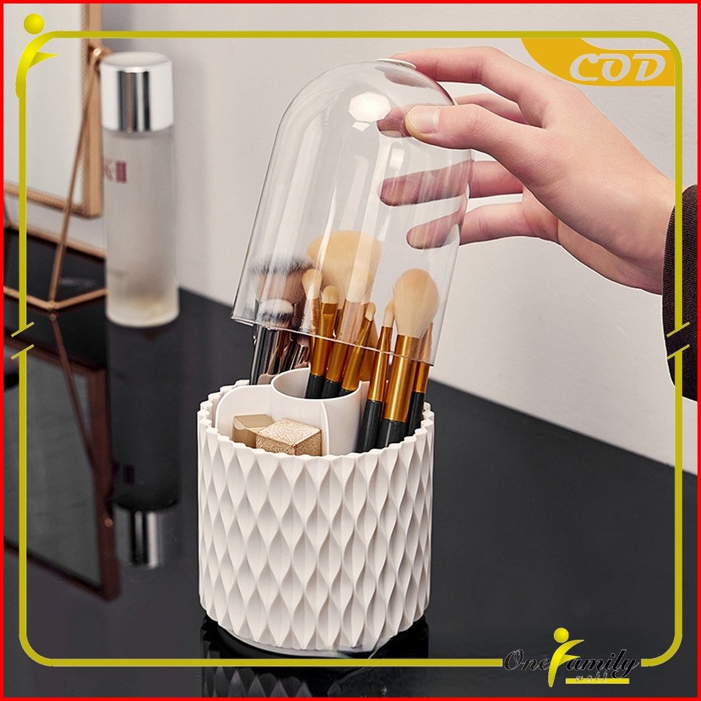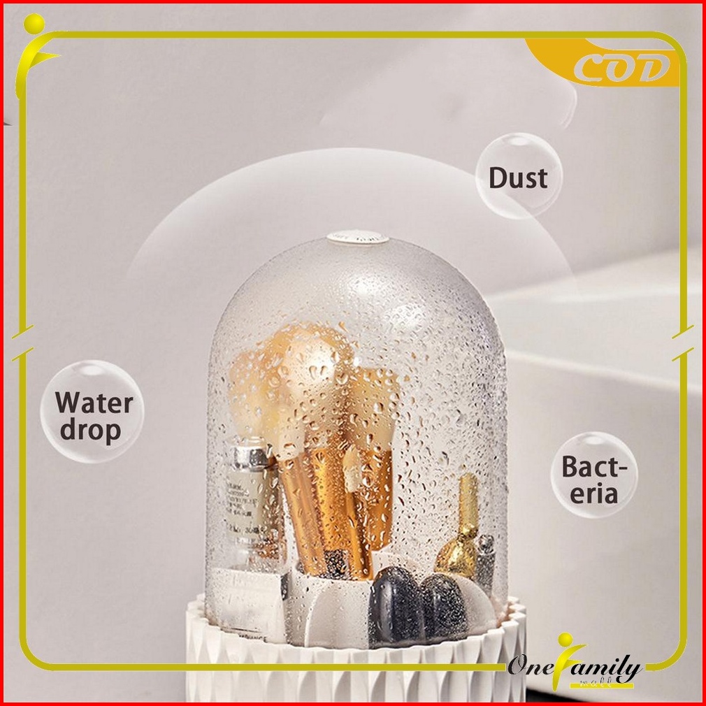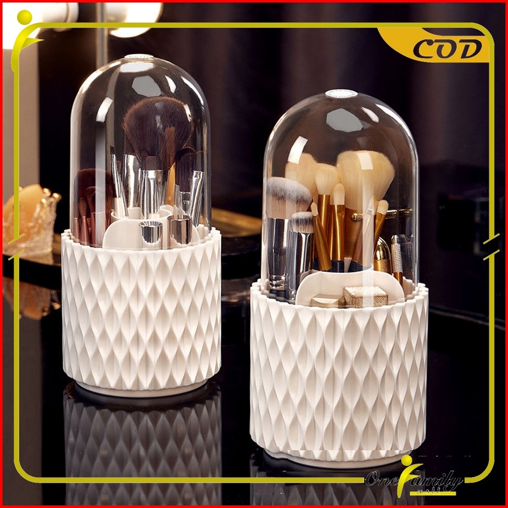 One-k145 Rak Kosmetik Putar 360 Derajat Dengan Tutup Transparan Serbaguna Kotak Penyimpanan Kuas Makeup Motif Storage Ma