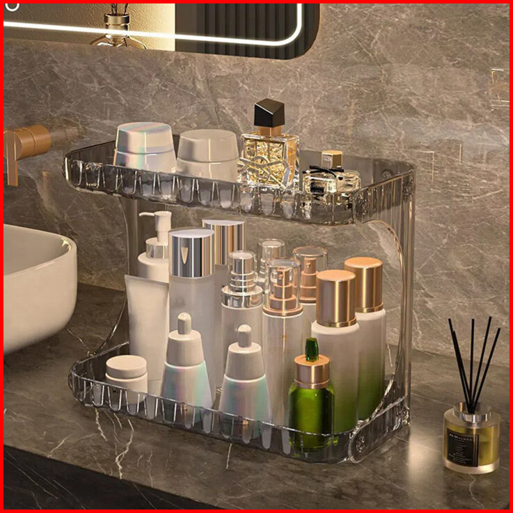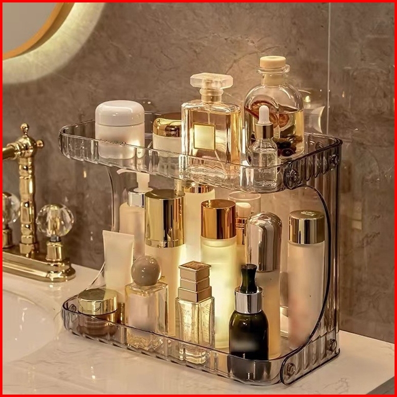 Loooopy Rak Kosmetik Acrylic 2 Tingkat Serbaguna Rak Penyimpanan Multifungsi Make Up Organizer
