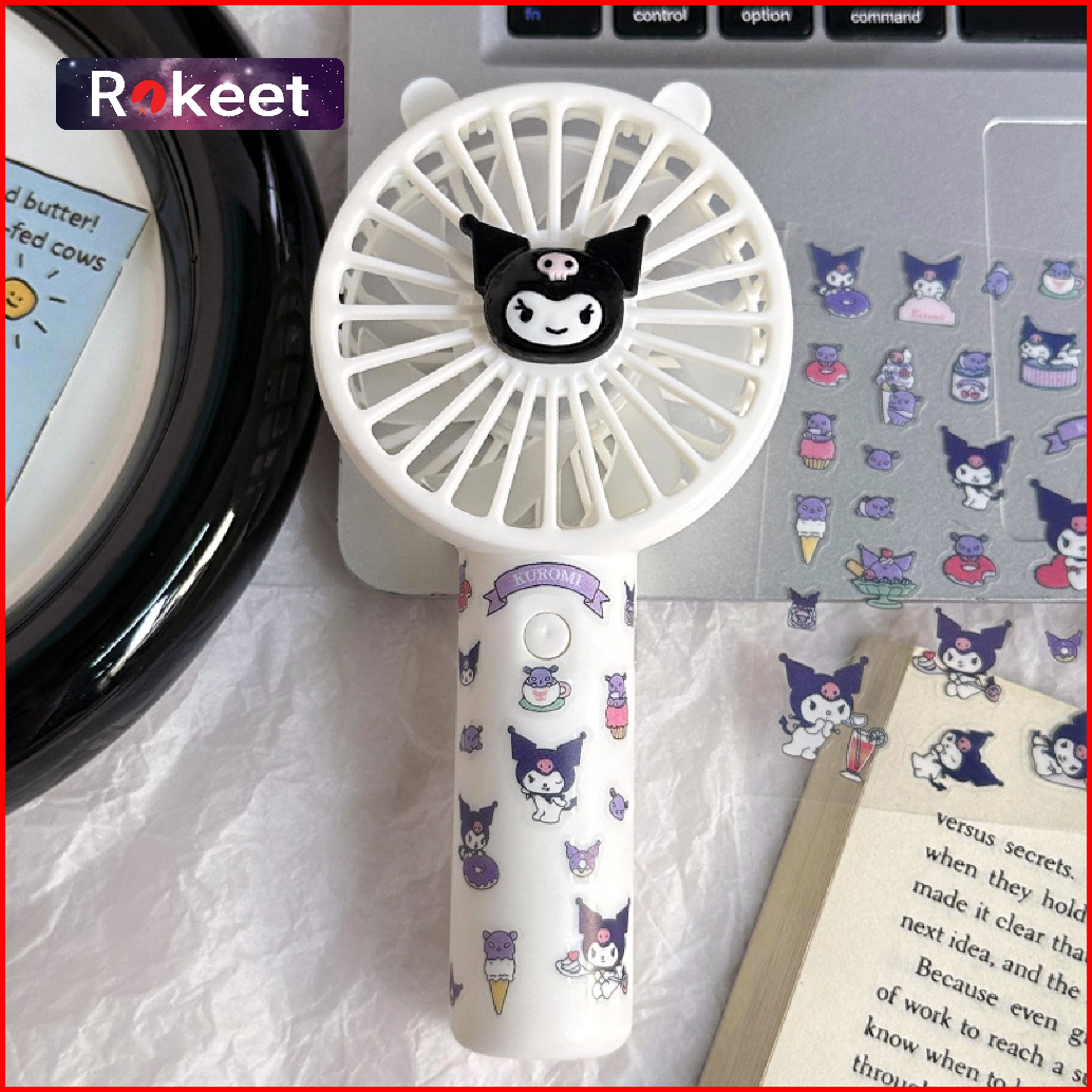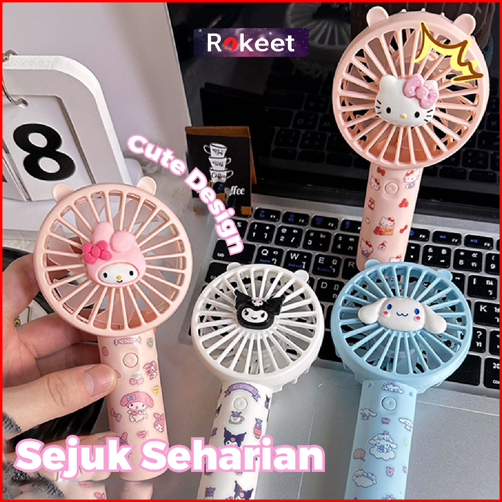 Rokeet Kipas Angin Mini Portable Genggam Karakter Kartun Kuromi Cinnamoroll Sanrio Family Rechargeable Free Sticker Lucu