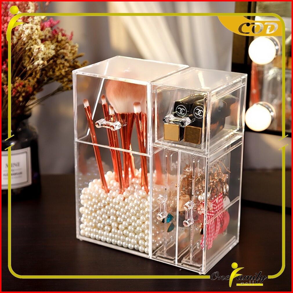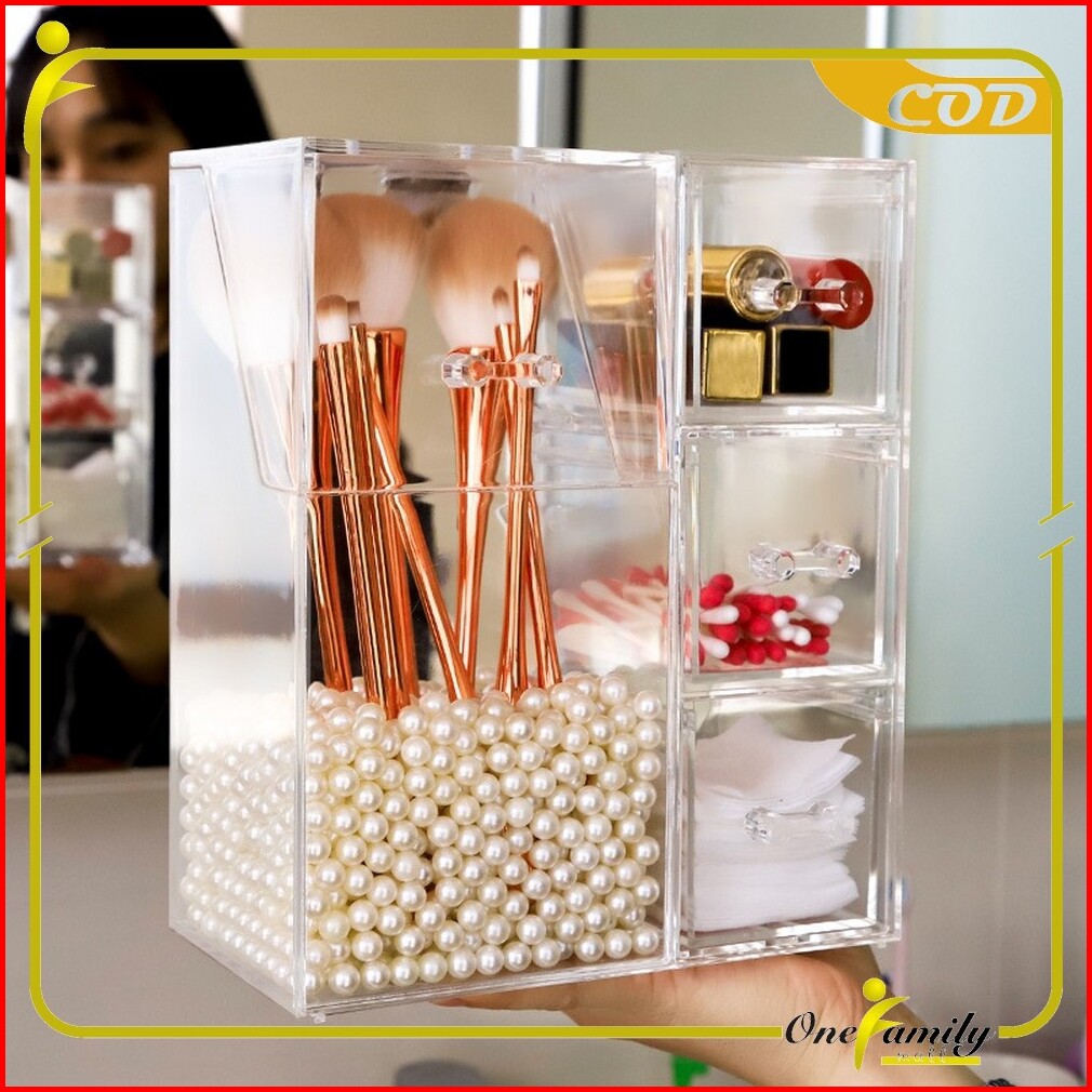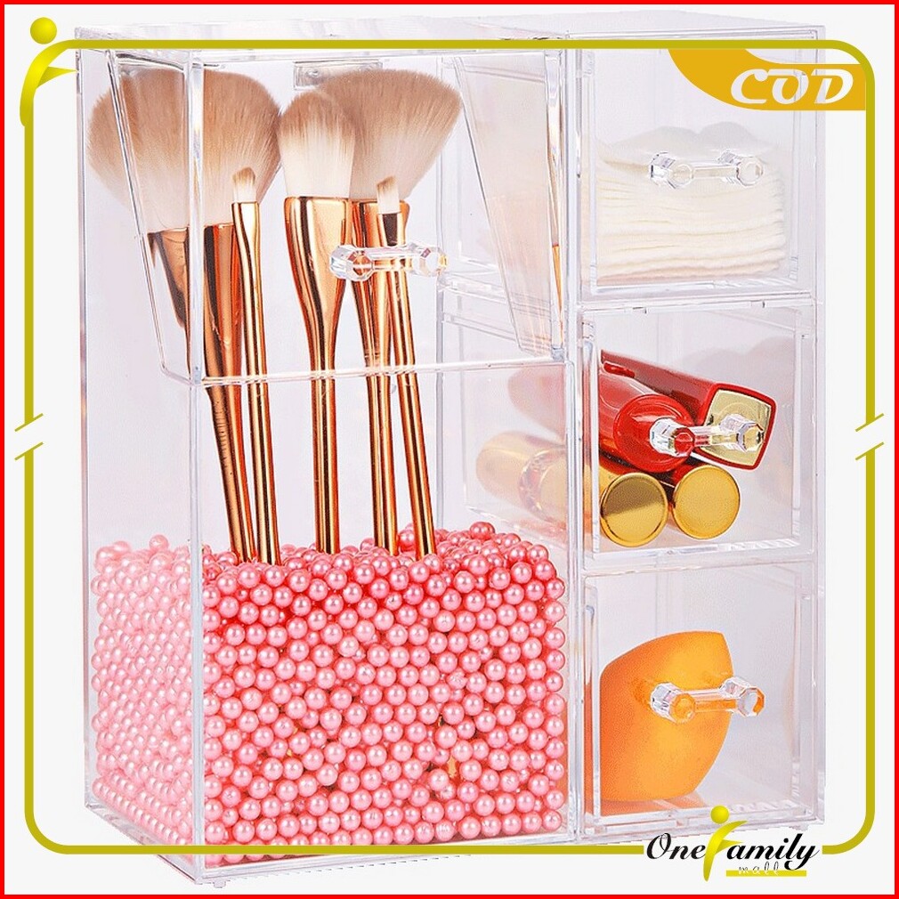 One-k18 Rak Organizer Multifungsi Kotak Penyimpanan Brush Make Up Mutiara Rak Anting Acrylic