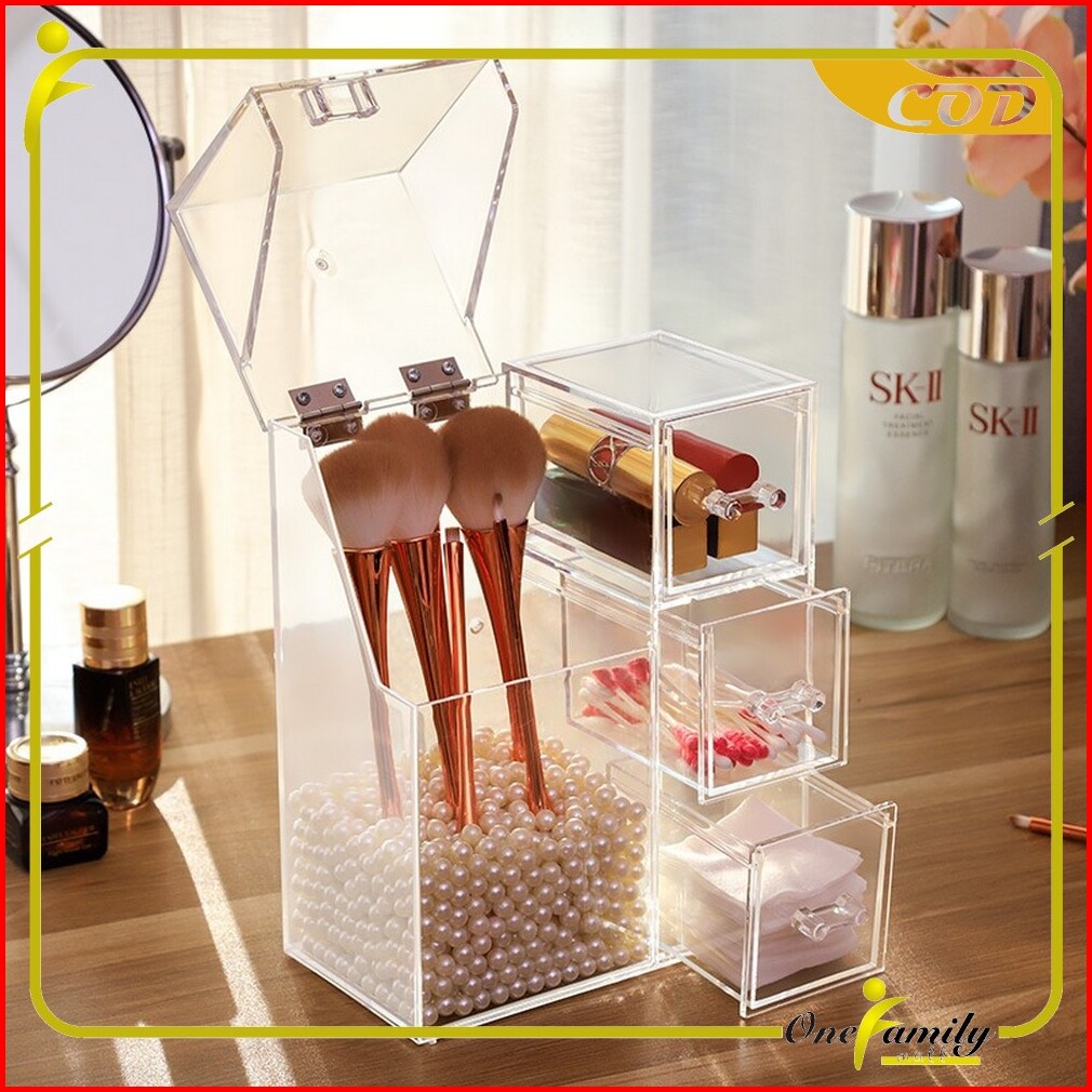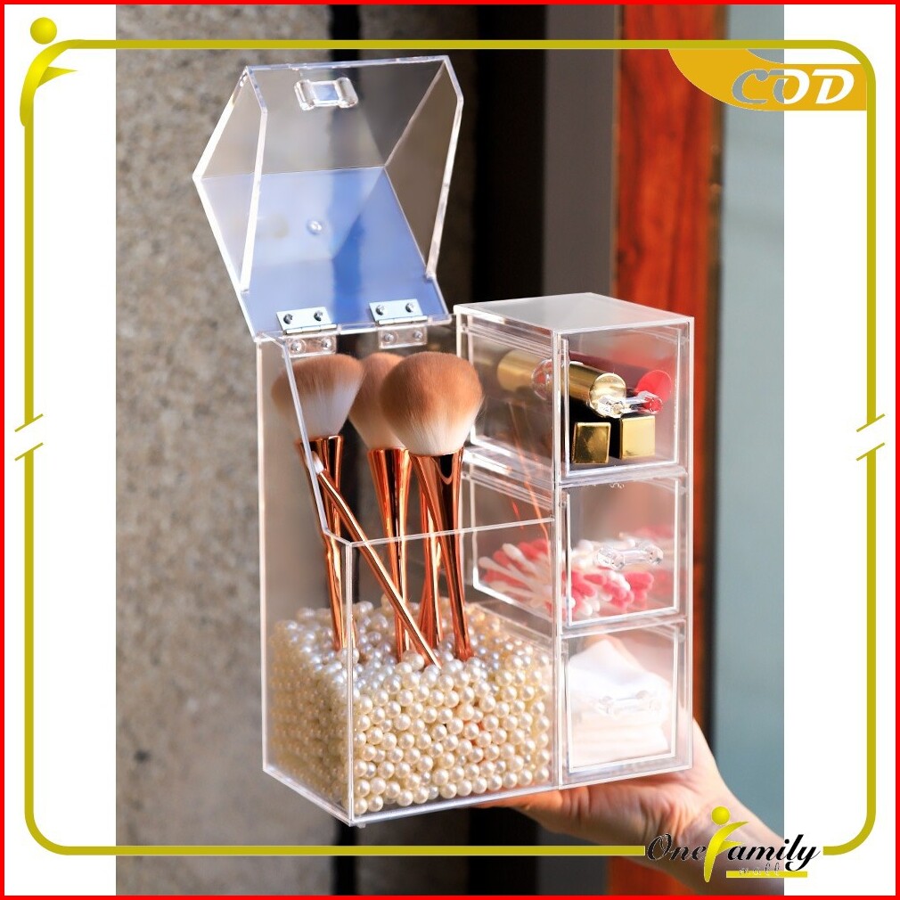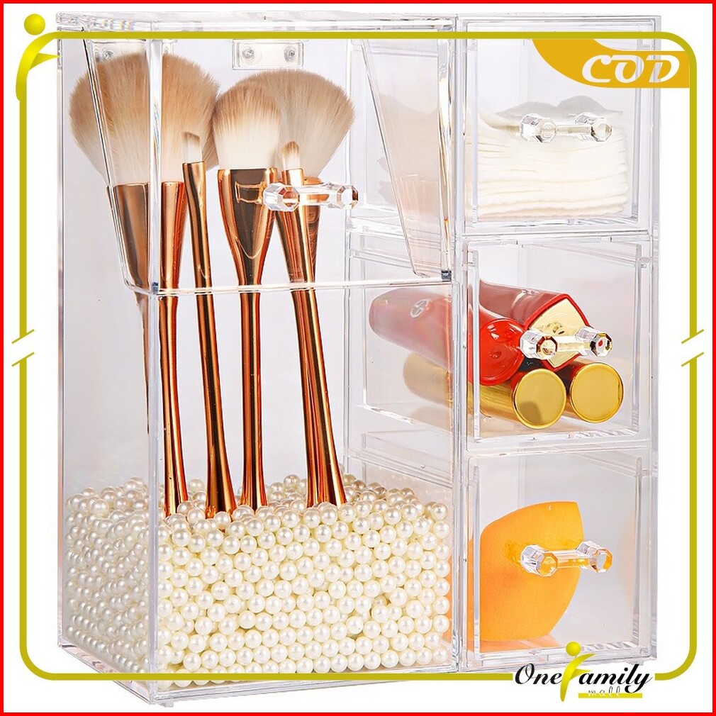 One-k18 Rak Organizer Multifungsi Kotak Penyimpanan Brush Make Up Mutiara Rak Anting Acrylic