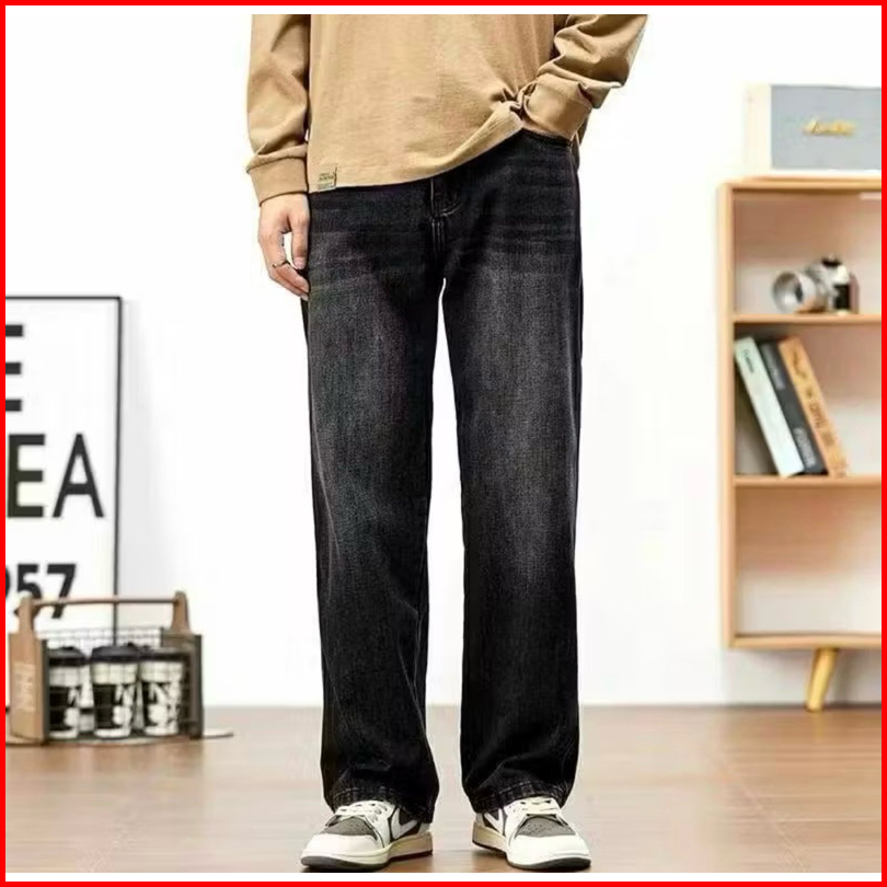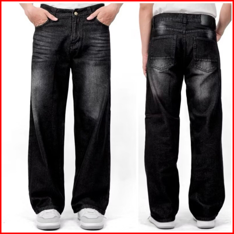 Gratis Ongkir Celana Jeans Wide Leg Wisker Lebar Gombrong Skena Black Wisker Pria Loose Fit Jumbo Big Keren Baggy