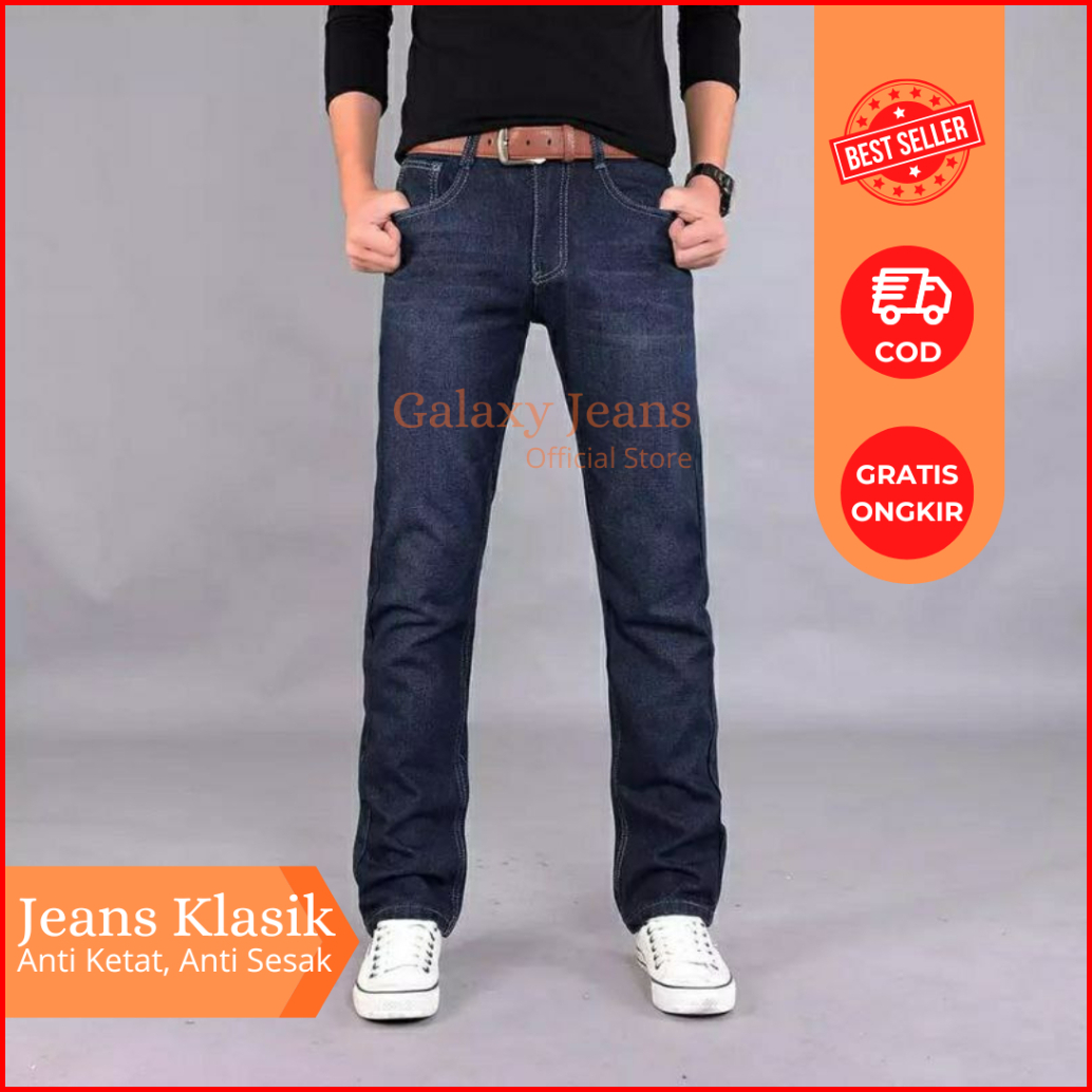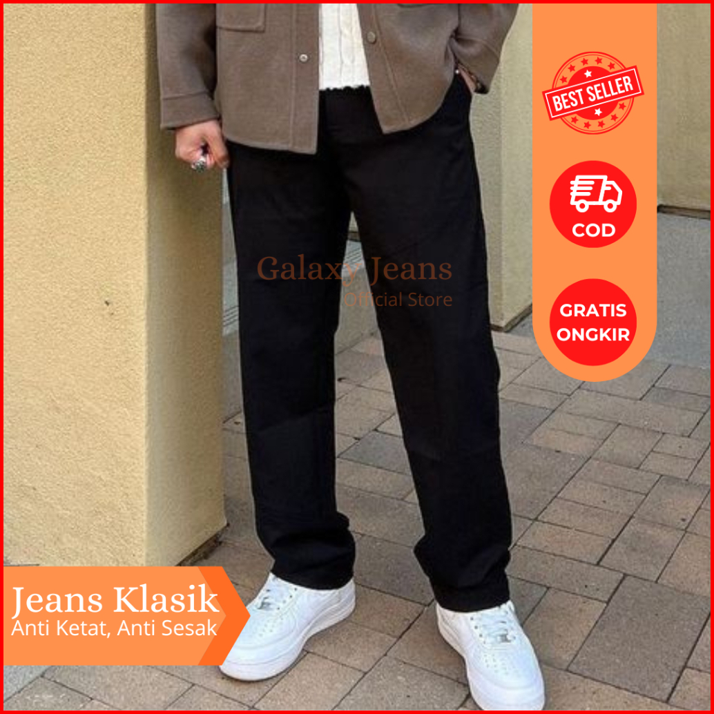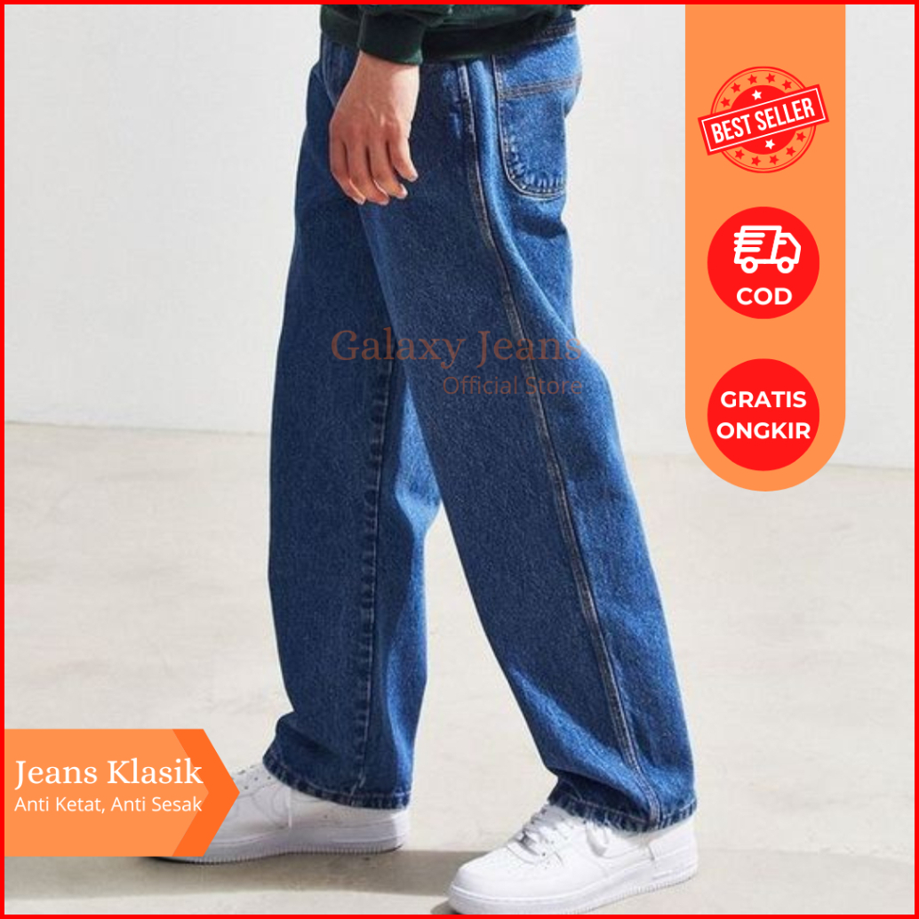Jeans Pria Panjang Celana Denim Kulot Korean Style Baggy Pants Straight Gombrong Oversize Standar Reguler Fit Premium Al