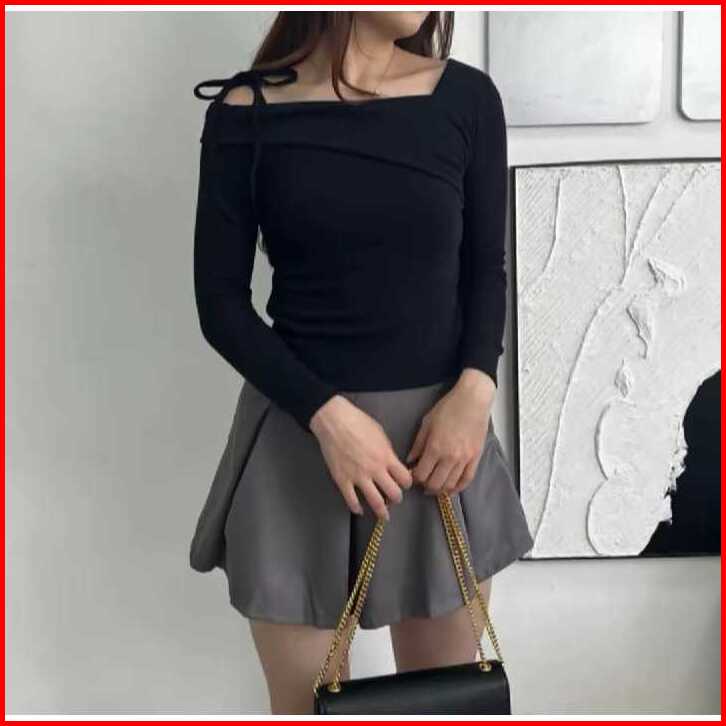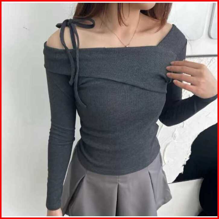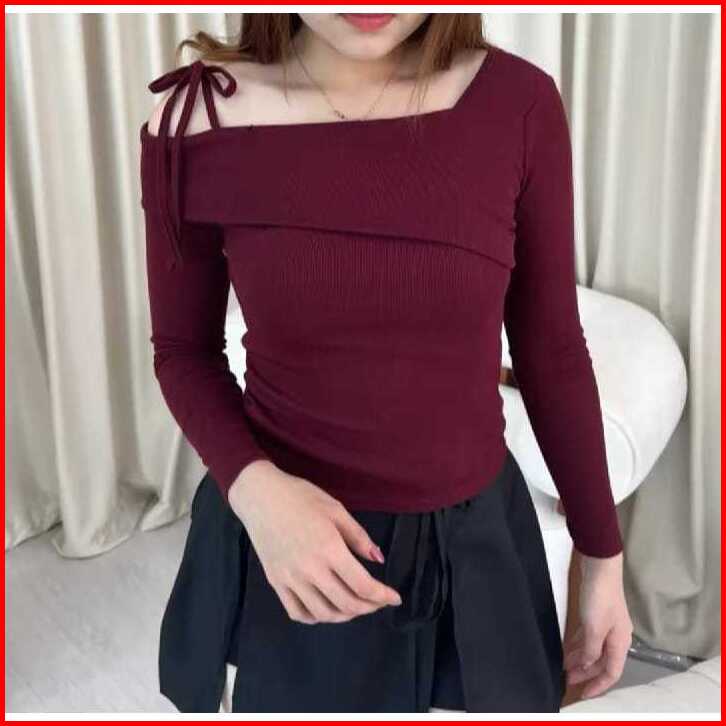 Sabrina Top Sabrina Knit Top Atasan Wanita Lengan Panjang Pita Korean Long Sleeve