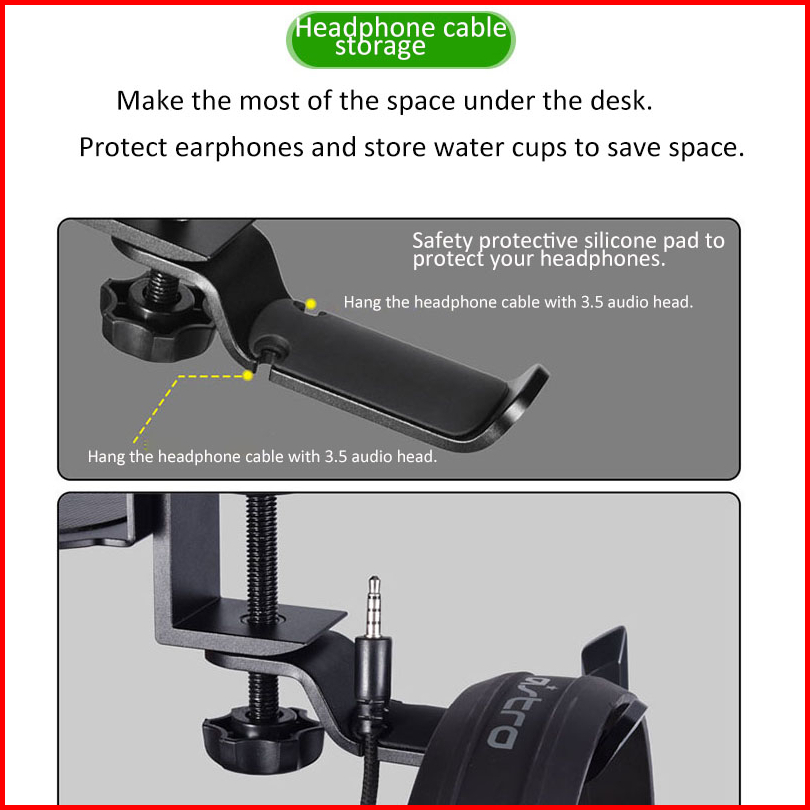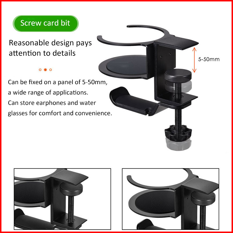 Under Desk Headphone Hanger Glass Cup Gantungan Headset Holder Premium Triple W