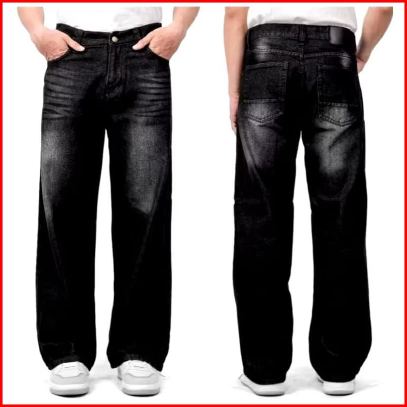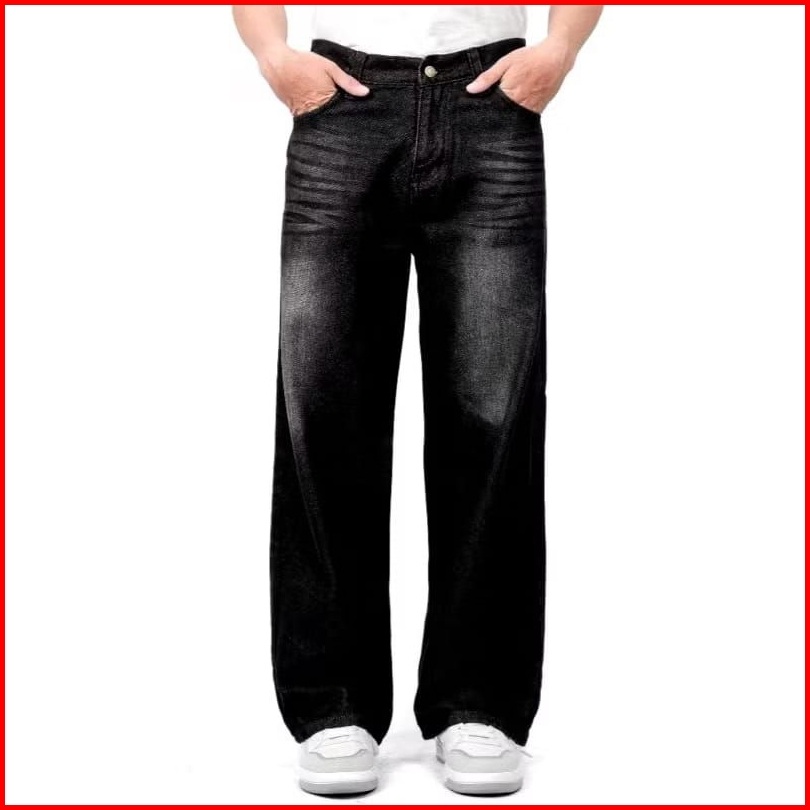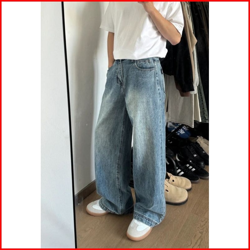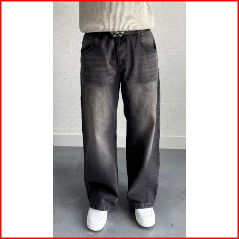Company - Celana Jeans Wide Leg Wisker Lebar Gombrong Skena Pria Loose Fit Jumbo
