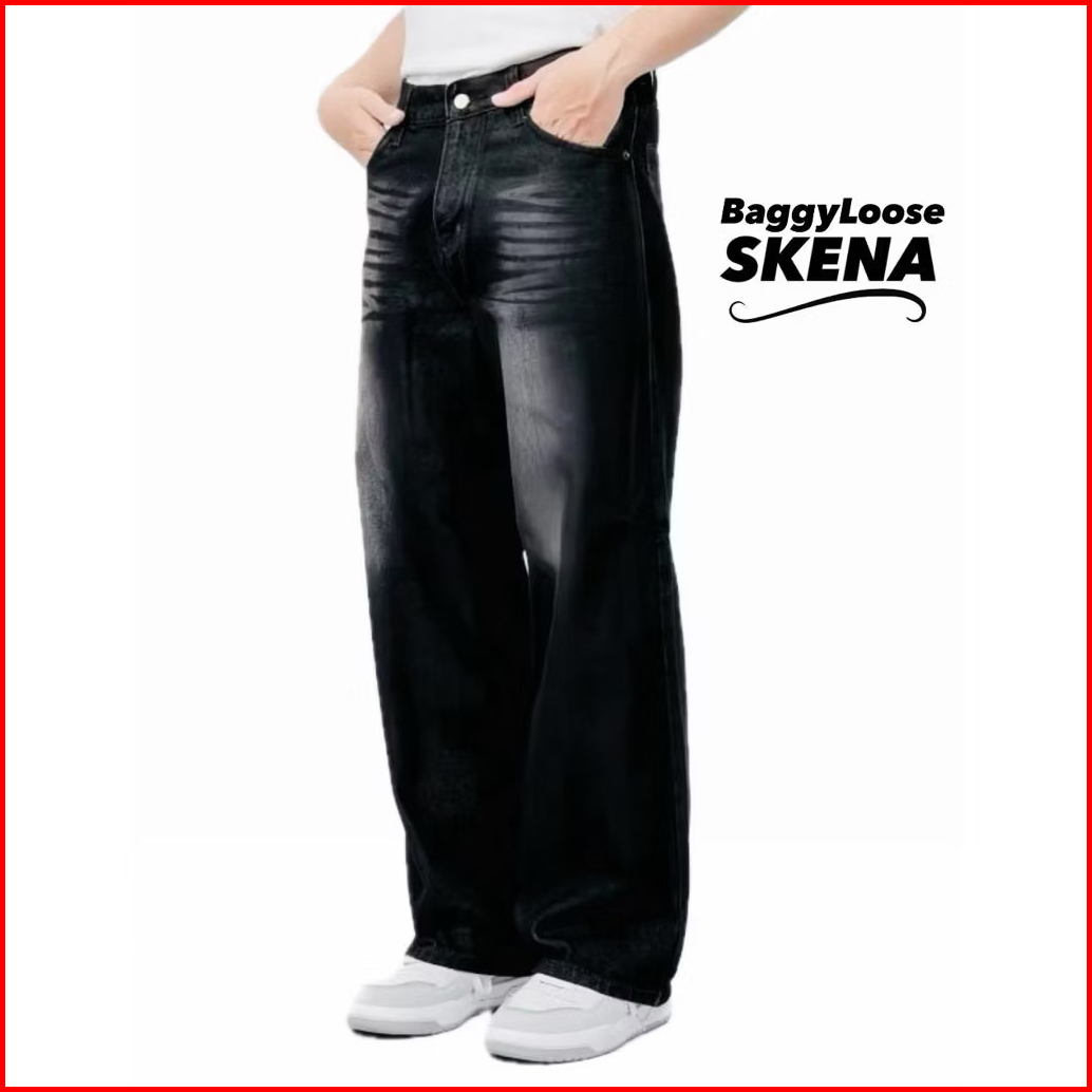 Terlaris Celana Baggy Jeans Pria Premium Korean Style Skena Wisker Gombrong Wide Leg Premium Loose Fit Highwaist