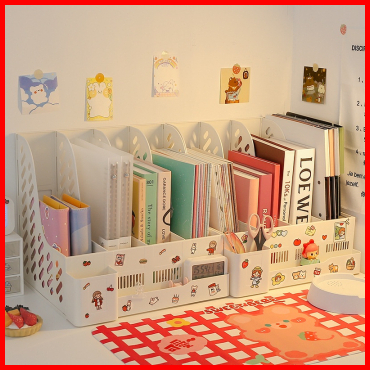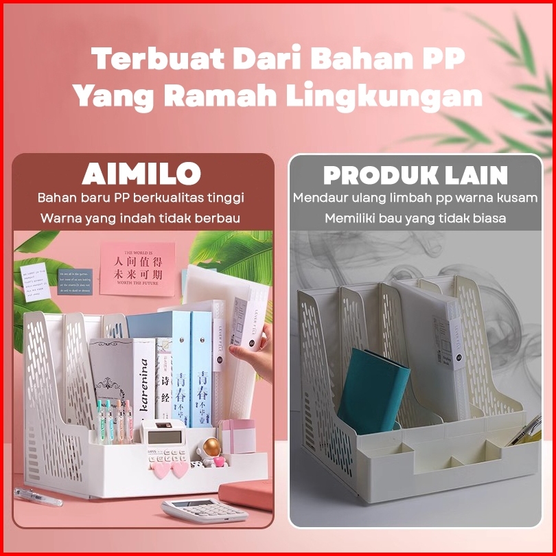 Aimilo Rak Buku Minimalis Aesthetic Tempat Buku Desktop Organizer File Serbaguna Box File Rak Buku Sekat