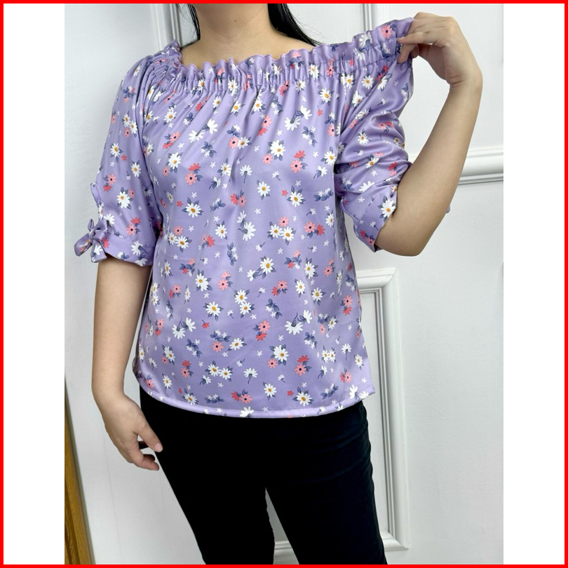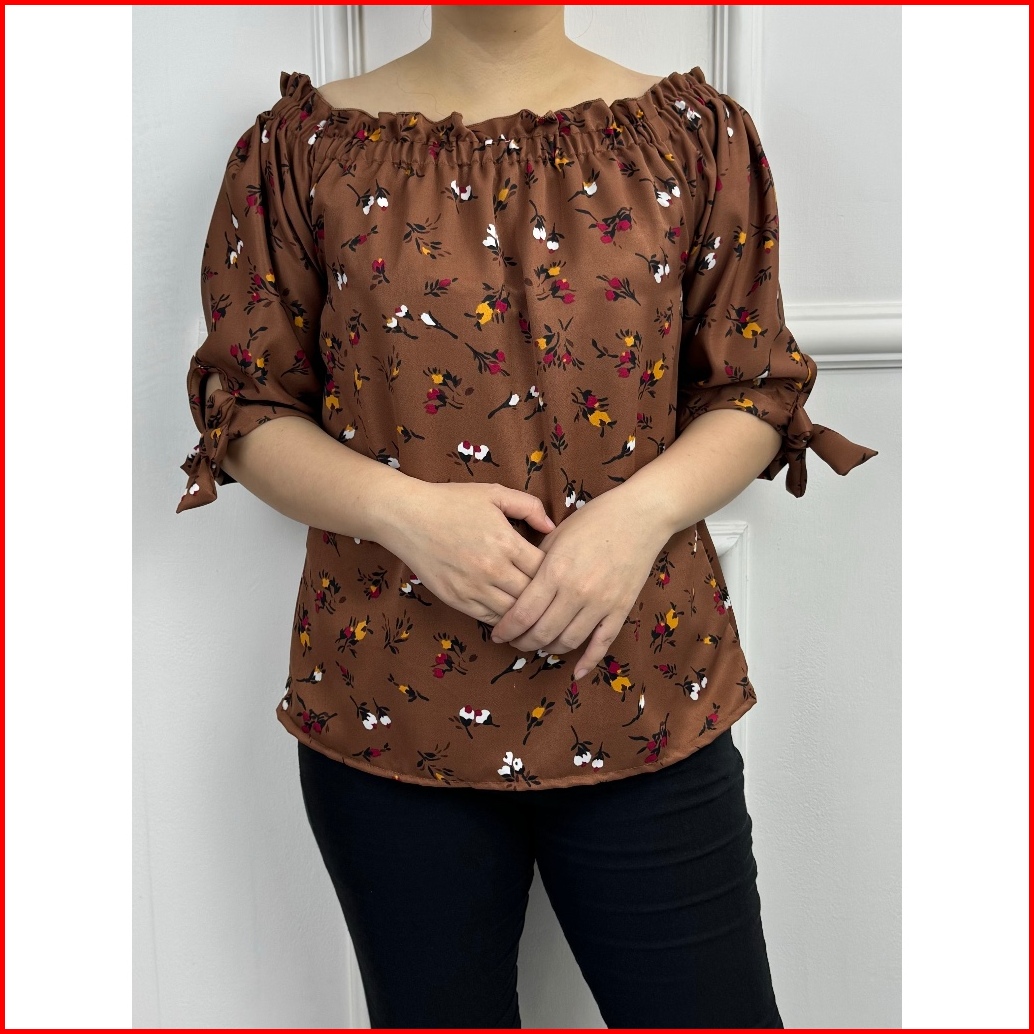 Limited New Blouse Sabrina Motif Bunga Atasan Wanita Baju Fashion Cewek Blus Sabrina Sakura