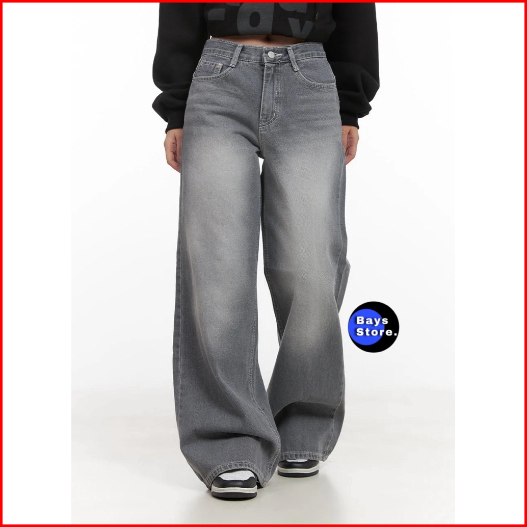 - Celana Panjang Jeans Baggy Abu Whisker Size 27-38 Loose Fit Highwaist Gombrong Korean Style
