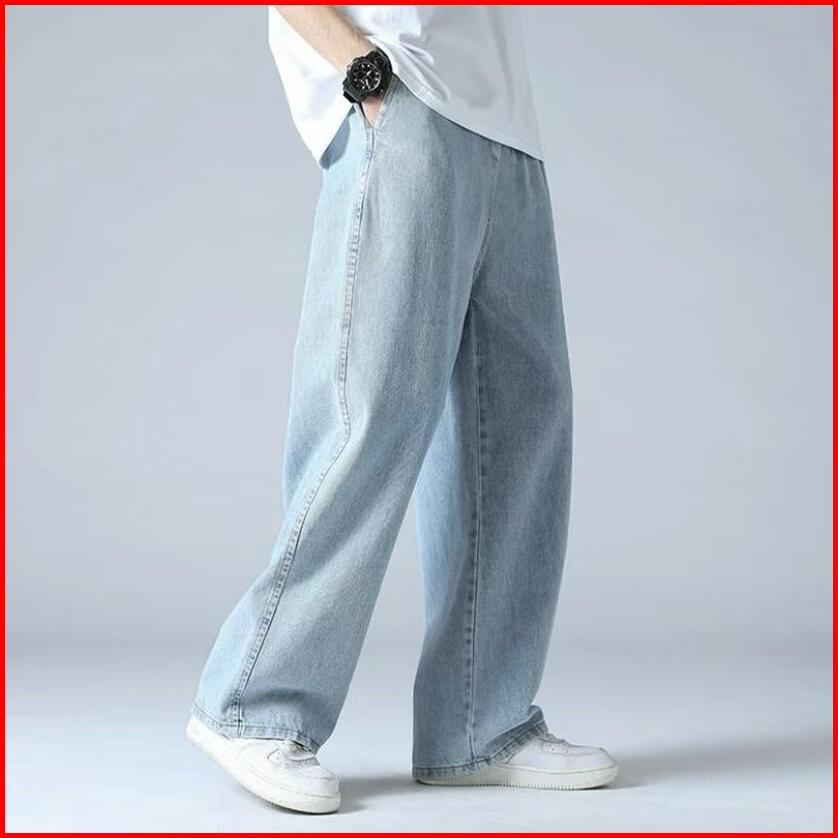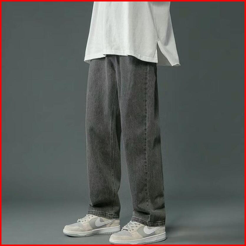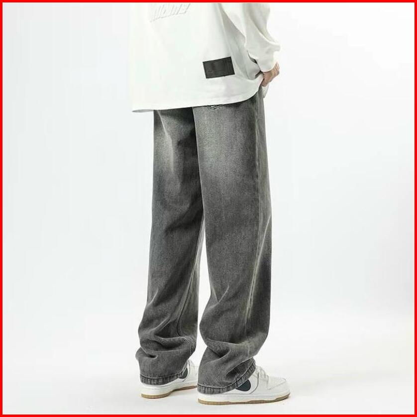 Celana Panjang Loose Pants Pria Model Baggy Jeans Tebal 13 Oz Warna Hitam Wisker Korean Style 701
