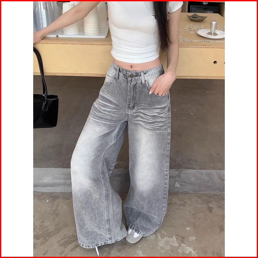 Highwaist Baggy Jeans Hangover Oversize Wanita - Baggy Loose Jeans Weekend Korean Baggy Straight Jeans - Kulot Jeans Loo